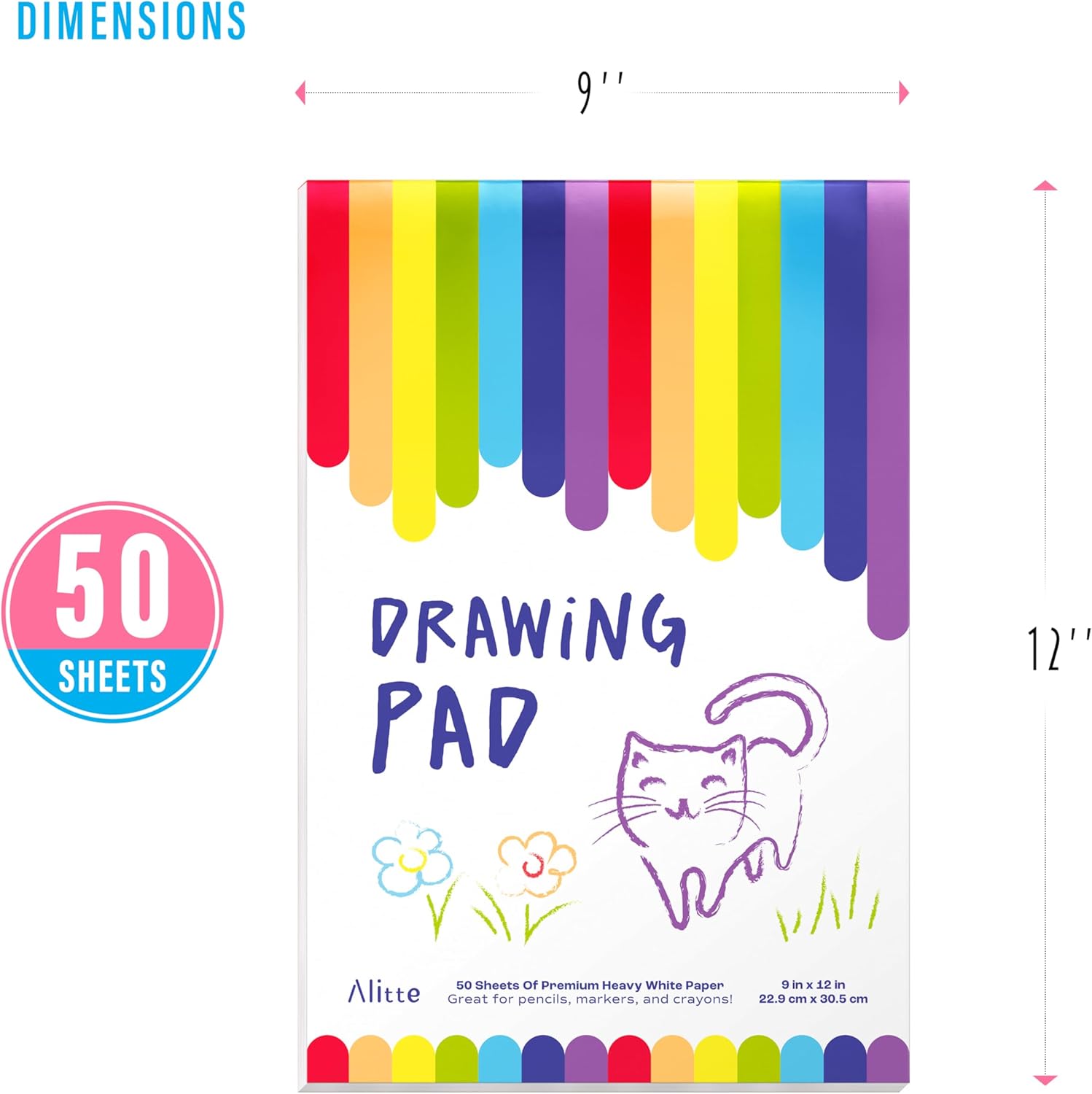 Alitte Drawing Pad for Kids - 3-Pack (9x12) Drawing Paper with Easy-Tear Pages - 50 Sheets - Kids Art Supplies | Sketch Pad for Drawing & Coloring - Suitable for Children and Toddlers