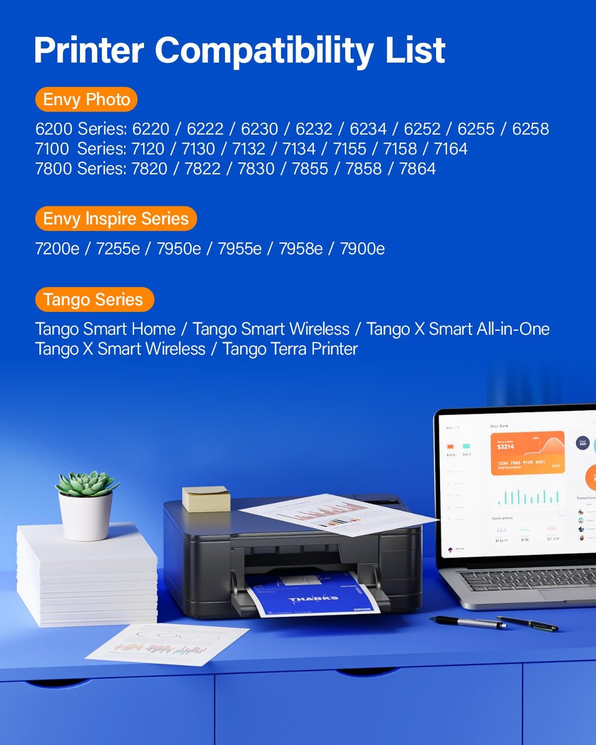 - Compatible Printer: Compatible for HP Envy Photo 7855 7858 7155 7158 7164 7120 7100 7800 6255 6252, ENVY Inspire Series: 7200e 7255e 7900e 7950e 7955e 7958e,Tango Series