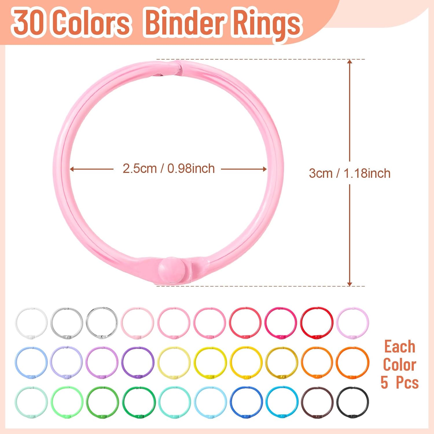 150 Pcs Loose Leaf Binder Rings Colorful Book Rings Metal Notebook Paper Flash Cards Keychain for Index Cards Students Teachers Workers School Office, 1 Inch, 30 Colors