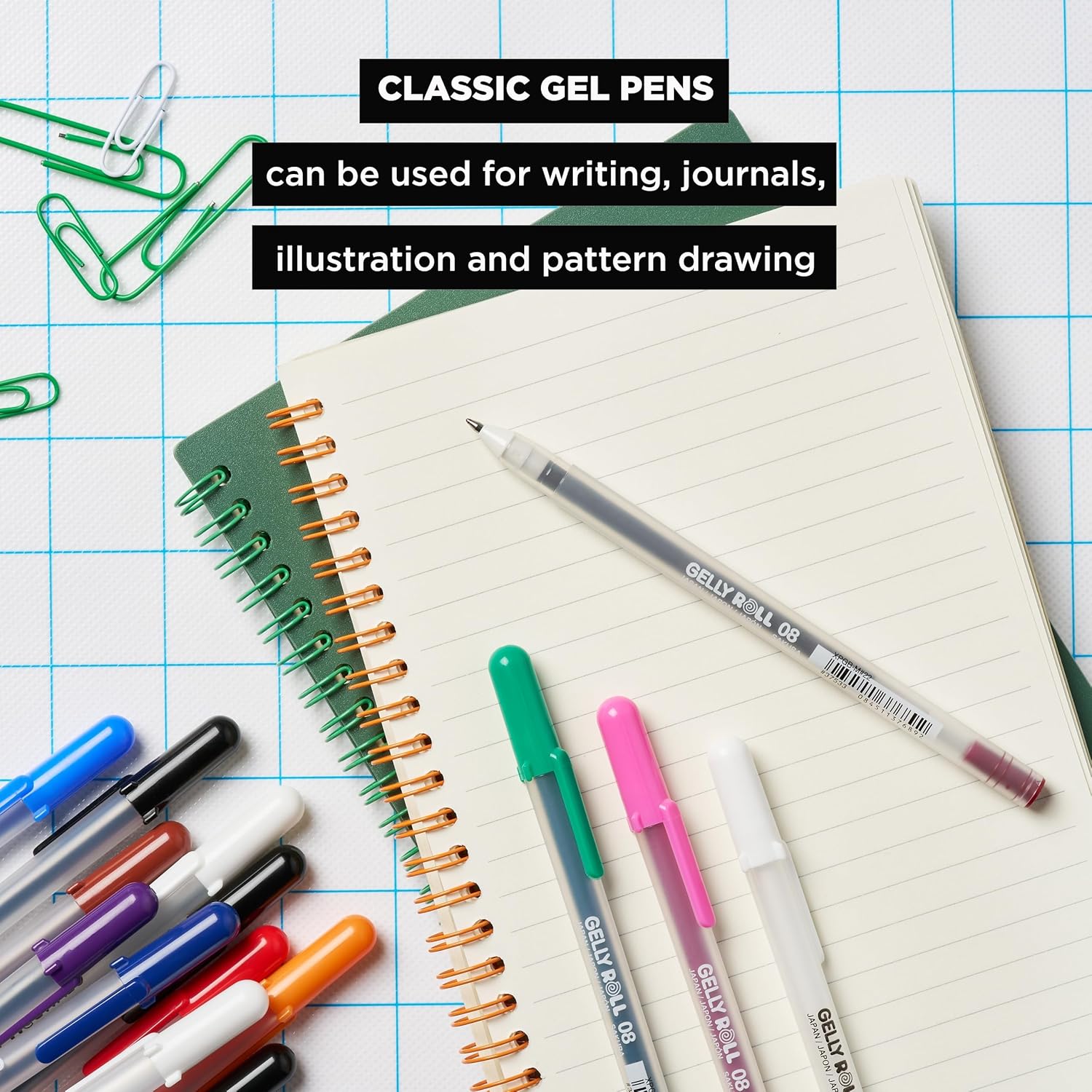 - Varied Line Sizes: Gelly Roll comes in three sizesβ10 Bold for a solid bold line; 08 medium for a medium bright line; and 05 fine for a finer, lighter white line