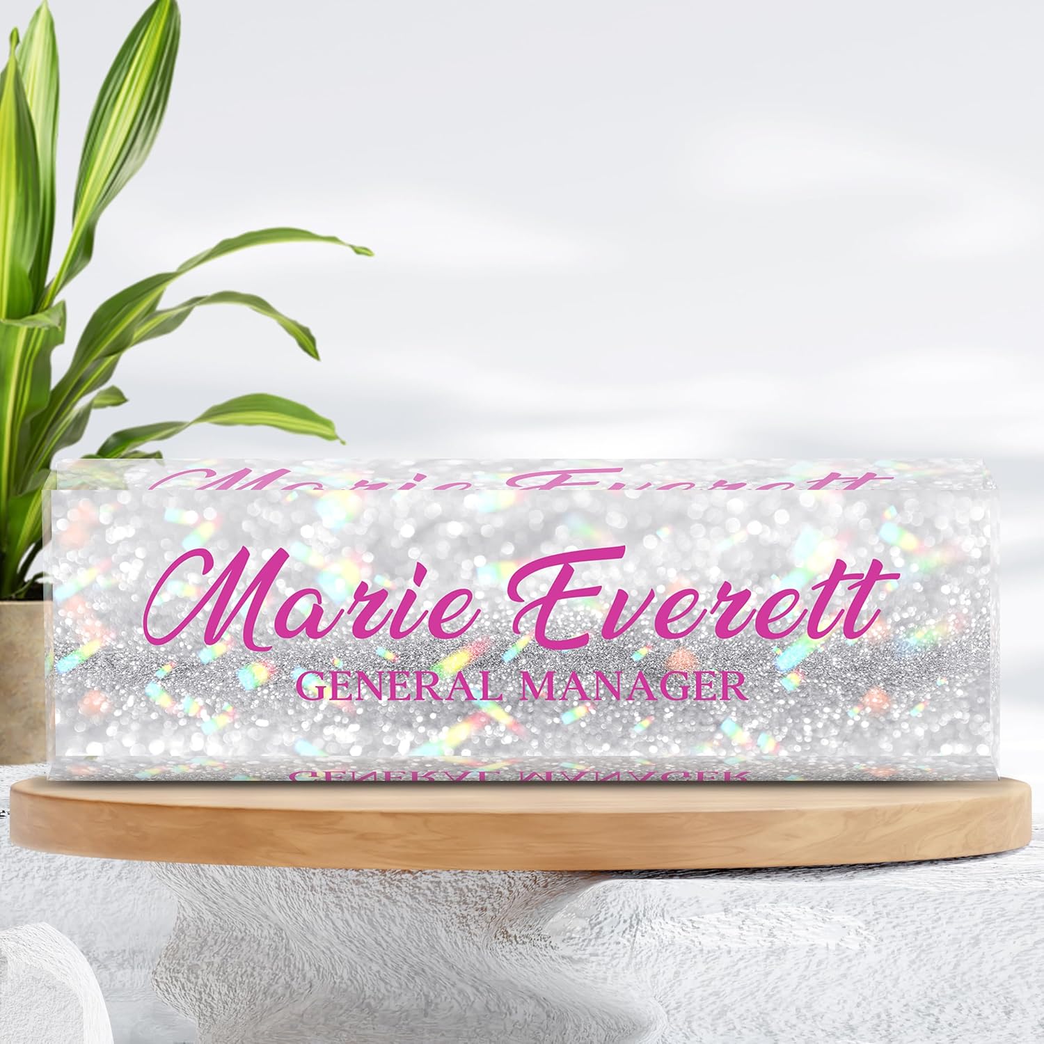 Custom Name Plate for Desk | Personalized Desk Name Plate | Personalized Boss Employee Appreciation Gifts | Acrylic Name Plate Office Desk Accessories (A-Silver Colored Crystal)