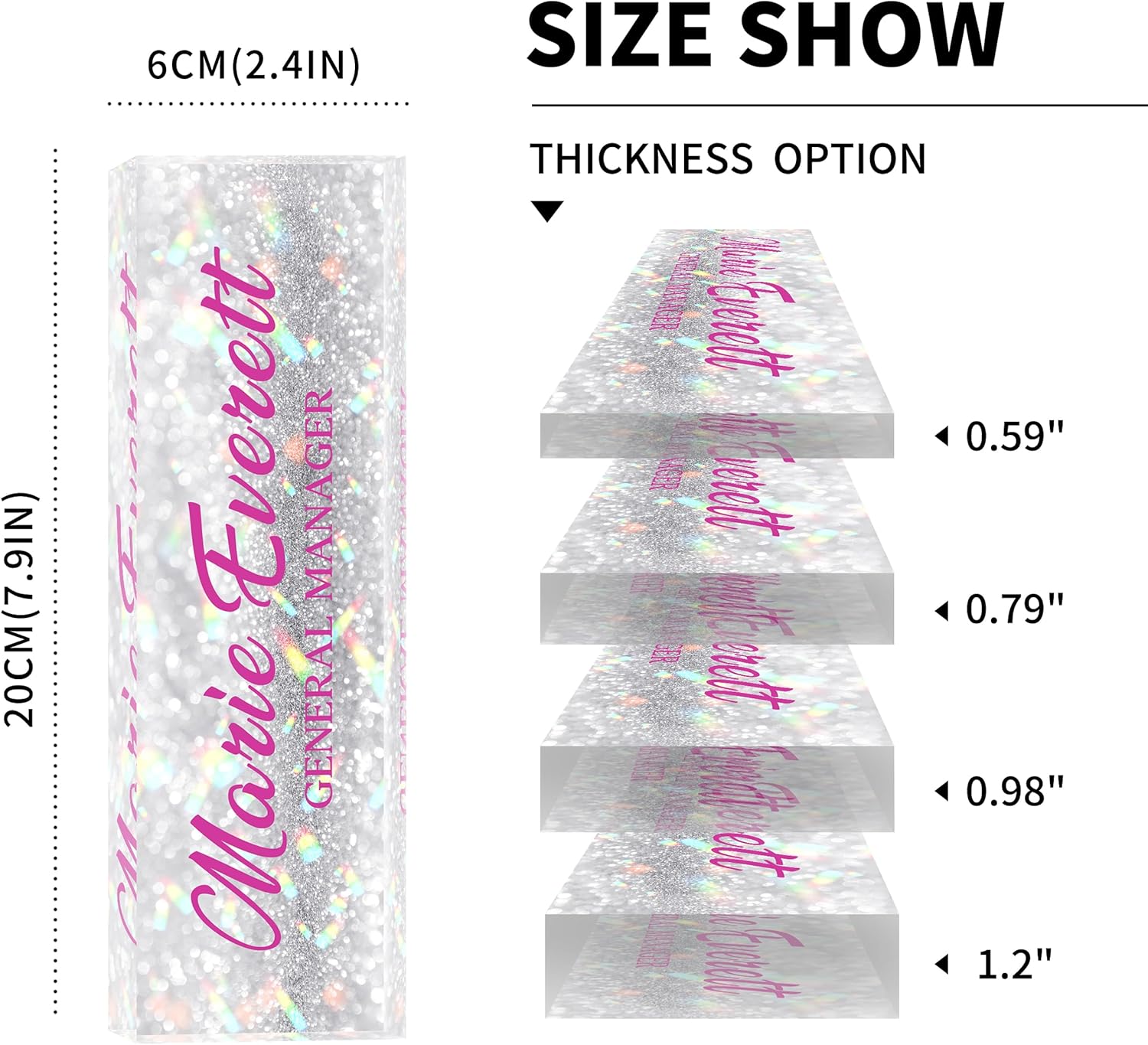 - ăCustom Desk Name Plateă:Just choose the style you like from the new styles we designed, and then enter your name, title, motto, blessings, etc., and a high-quality custom name plate that is exclusive to you will be born. It is the best choice whether it is a gift or for personal use.