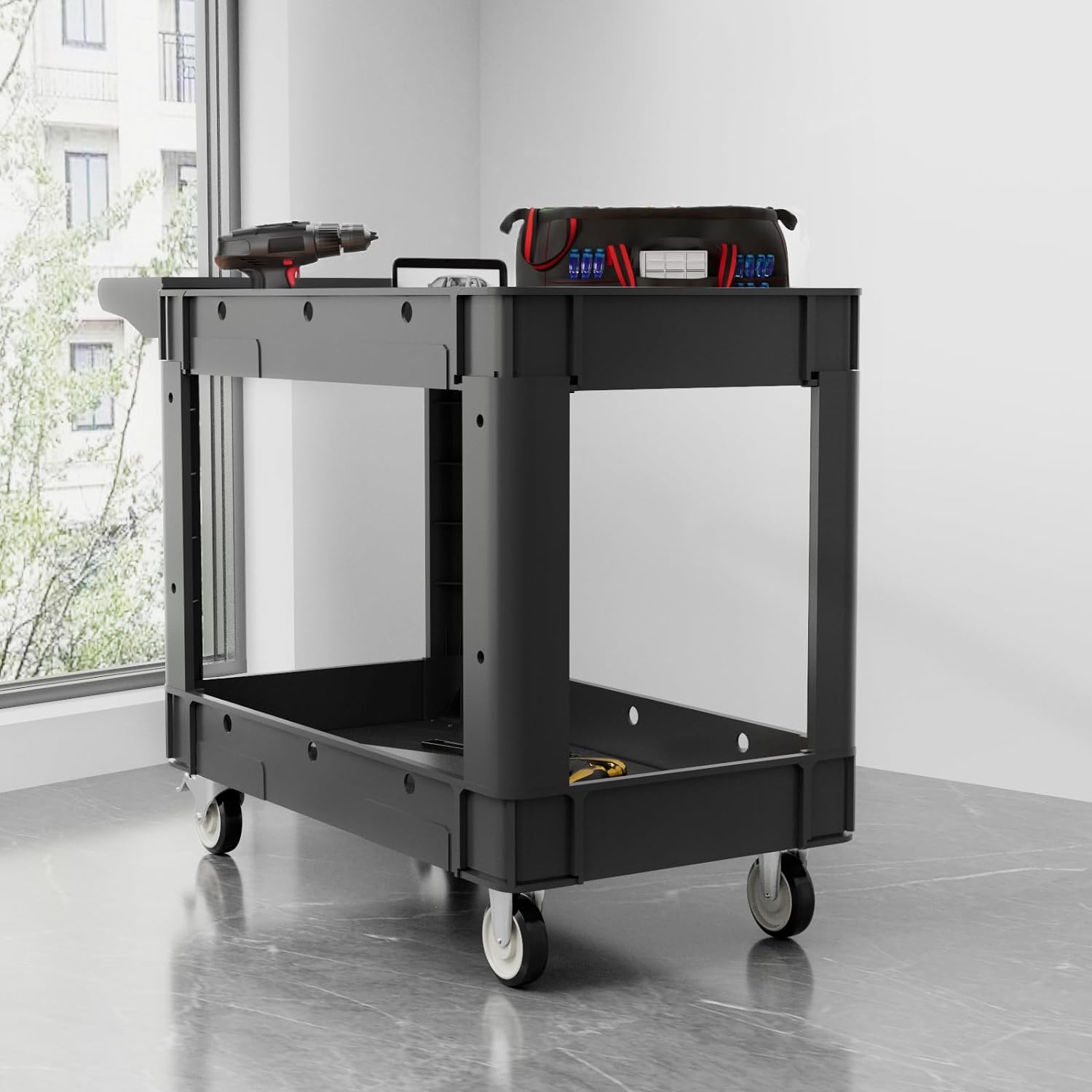 Commercial Grade 2 Shelf Utility Cart with Wheels - Rolling Tool Trolley, Heavy Duty Service Push Cart for Business Warehouse Office Restaurants Ecommerce Garage