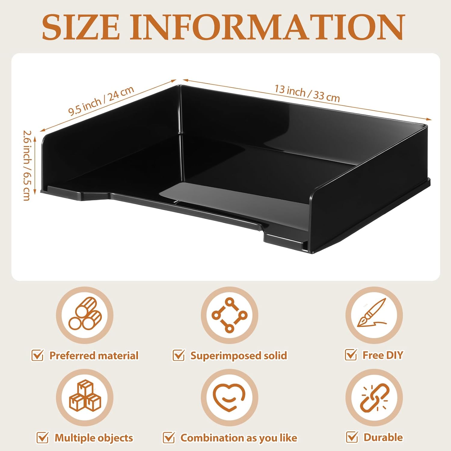 6 Pcs Stackable Letter Tray Rectangular Plastic Desk Organizer 13 x 9.5 x 2.6 in Paper Holder File Tray Accessories Rack for Desktop Office Desk Drawers (Black)