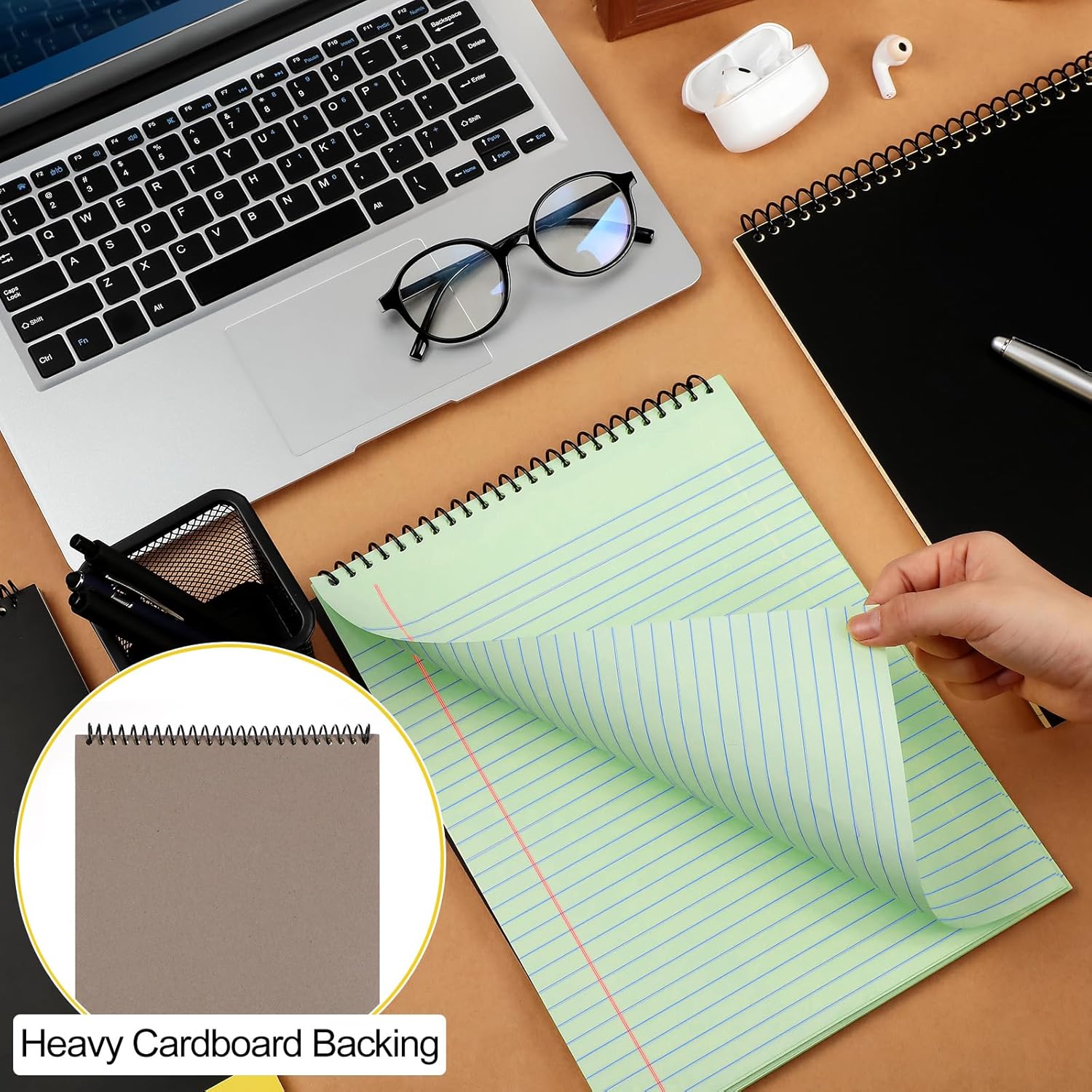 6 Pcs Legal Pad Top Spiral Bound Notebook 70 Sheets Wirebound Notepad Double Sided Ruled Memo Steno Pad with Stiff Back Cover for Business(8.5 x 11 Inches,No Holes,6 Colors)
