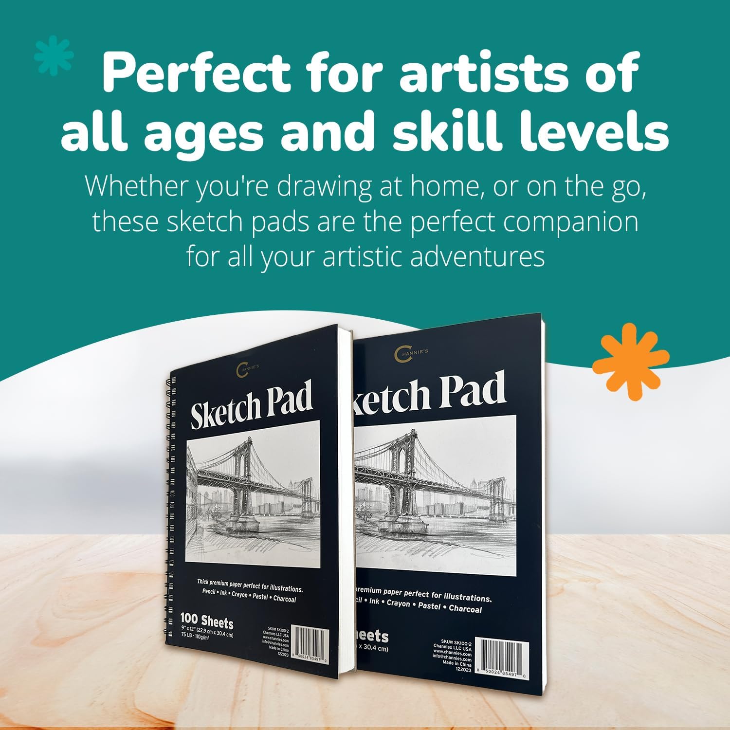 Channie's Dual Pack Sketch Pads for Kids & Adults - Premium Quality Drawing Paper, Ideal for Pencils, Pens, Charcoal, and Markers - Durable Sketchbook for Drawing & On-The-Go Creativity
