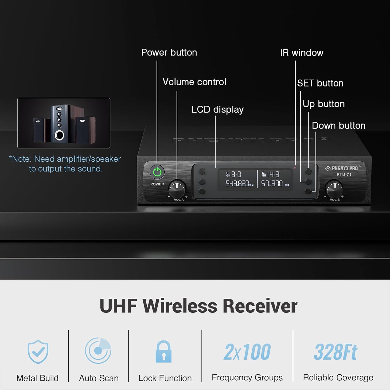 - Special Feature : AUTO SCAN, Battery Indicator Light, Mute Function, Up to 328ft long range operation