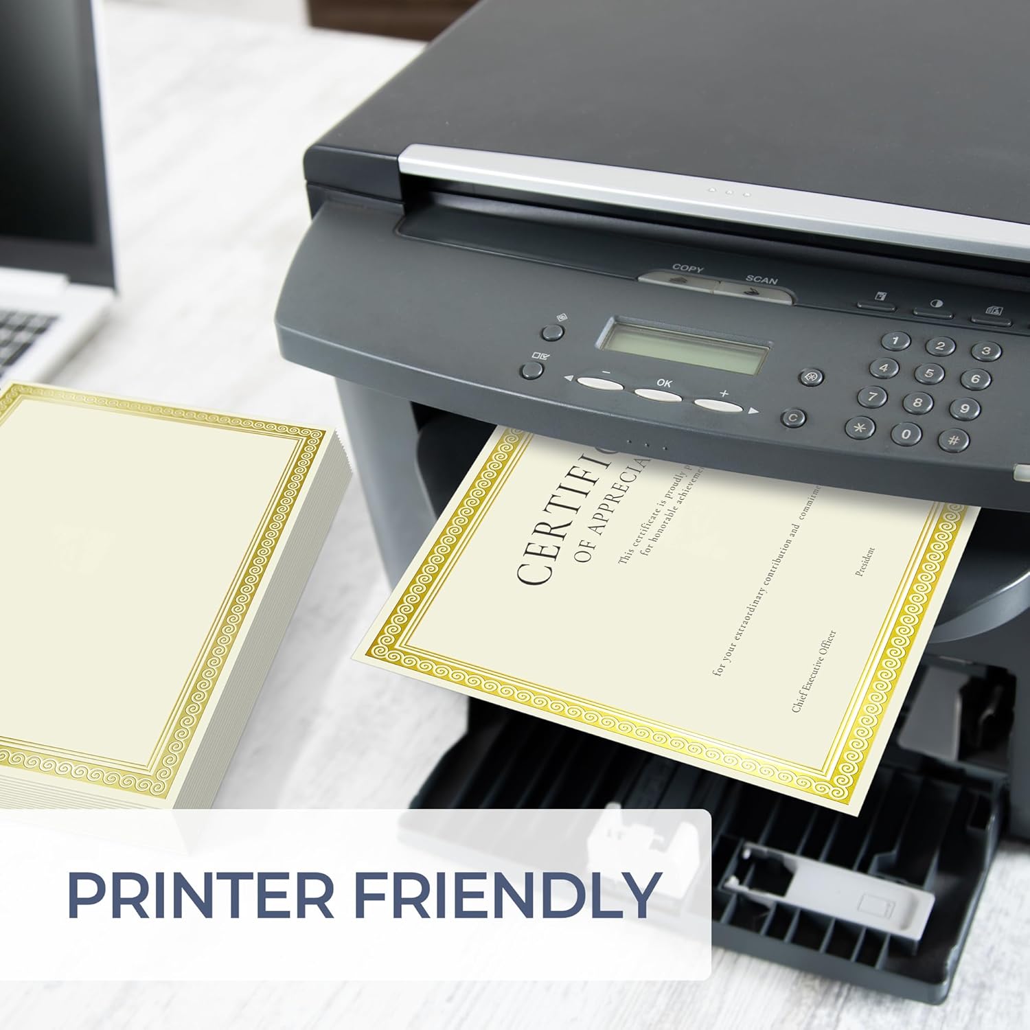 - PRINTER-FRIENDLY: Compatible with inkjet and laser printers. Custom print awards with our gold foil border certificate paper.
