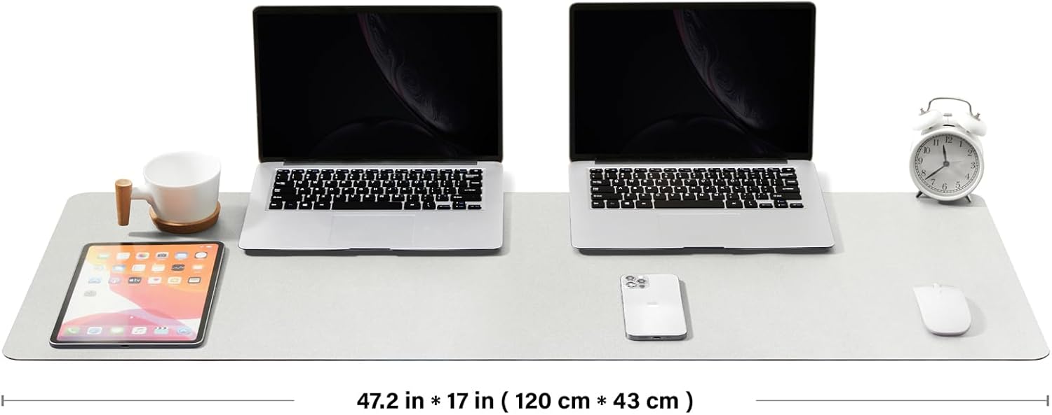 Large Desk Mat - 47.2"x 17" Non-Slip PU Desk Pad for Office and Home - Ideal for Large Mouse Pad and Desk Mats on Top of Desks(White)