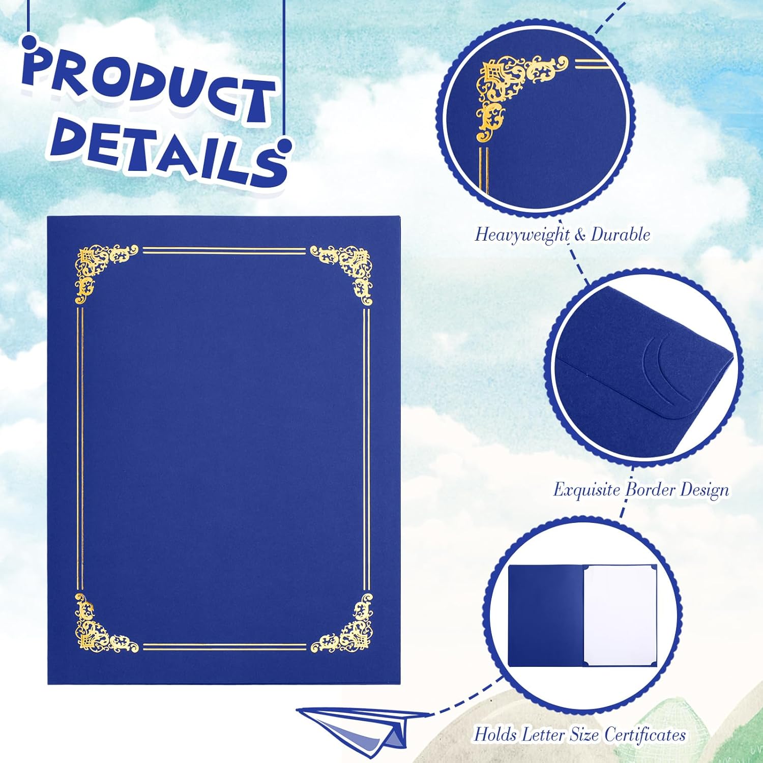 Fainne 80 Pieces Certificate Holders Diploma Holders Document Holder Certificate Covers Certificate Folders with Gold Foil Border for Letter Size 8.5 x 11 Inches Diploma Documents Awards (Royal Blue)
