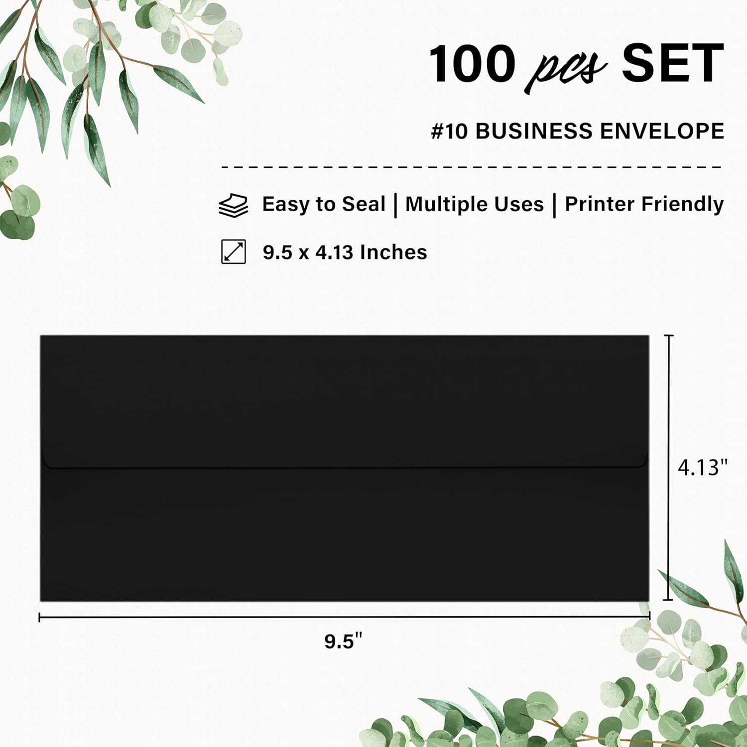 100 Pack #10 Business Envelopes, Self Seal Standard Black Envelopes for Secure Business & Legal Mailing, Office, Checks, Letter, Invoices, 4 1/8 x 9 1/2 Inches