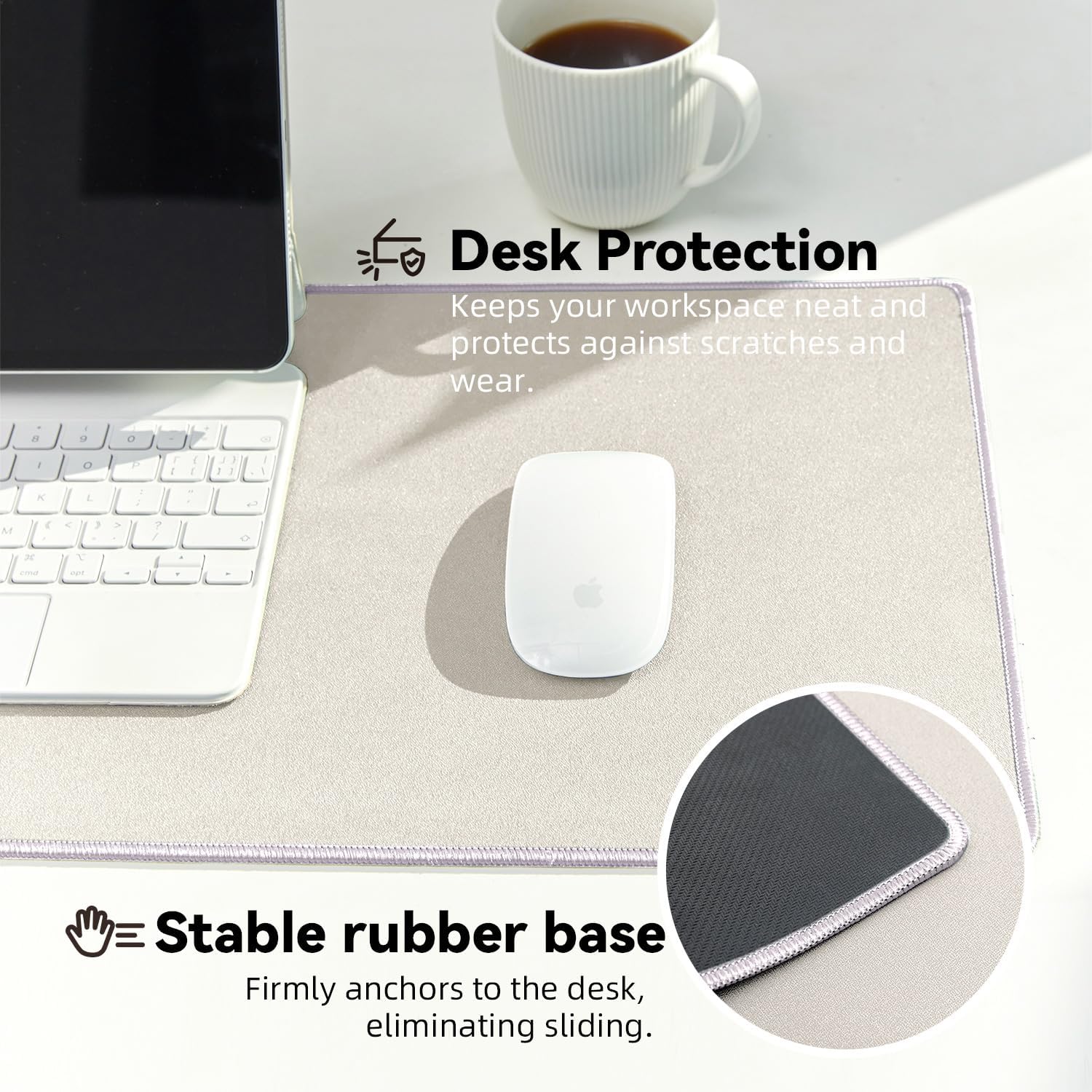 - Natural Rubber with Edge Stitching: Crafted from high-quality rubber material and enhanced with neatly stitched edges, this mouse pad delivers unparalleled comfort and durability.