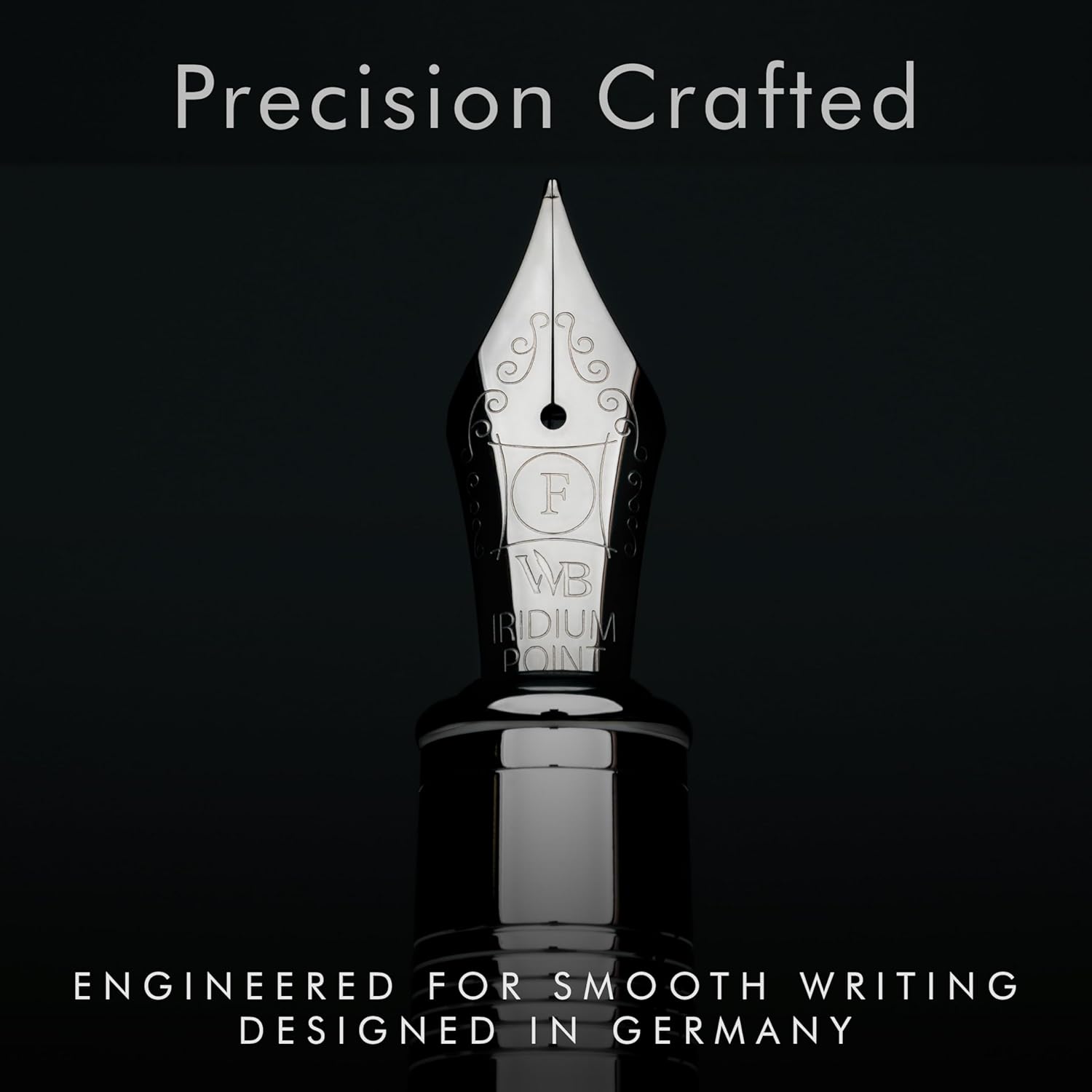 Wordsworth & Black Majesti Fountain Pen-(Checked), Luxury Case, Chrome Finish; Fine Nib- Ink Cartridges, Refillable Ink Converter-Calligraphy Pen-Best Business Gift Set for Men & Women