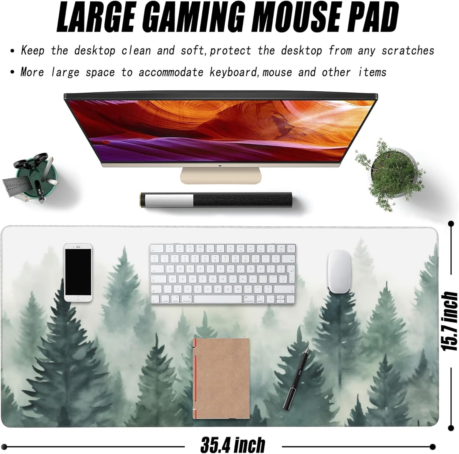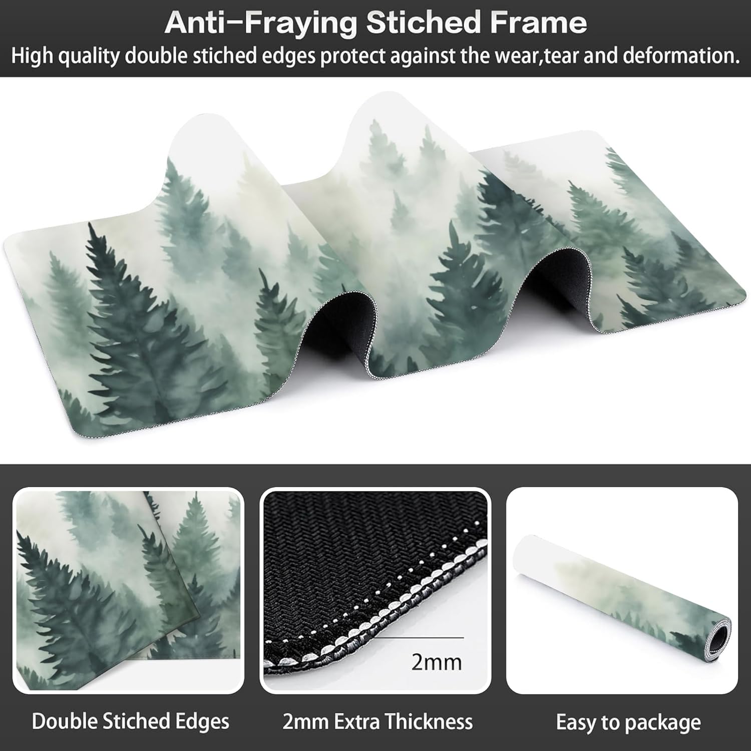 Extended Large Gaming Mouse Pad, Misty Forest Large Desk Mat for Desktop XXL, Non-Slip Rubber Base Stitched Edges Long Computer Keyboard Desk Pad Mouse Mat for Gaming Home Office 35.4"X15.7"