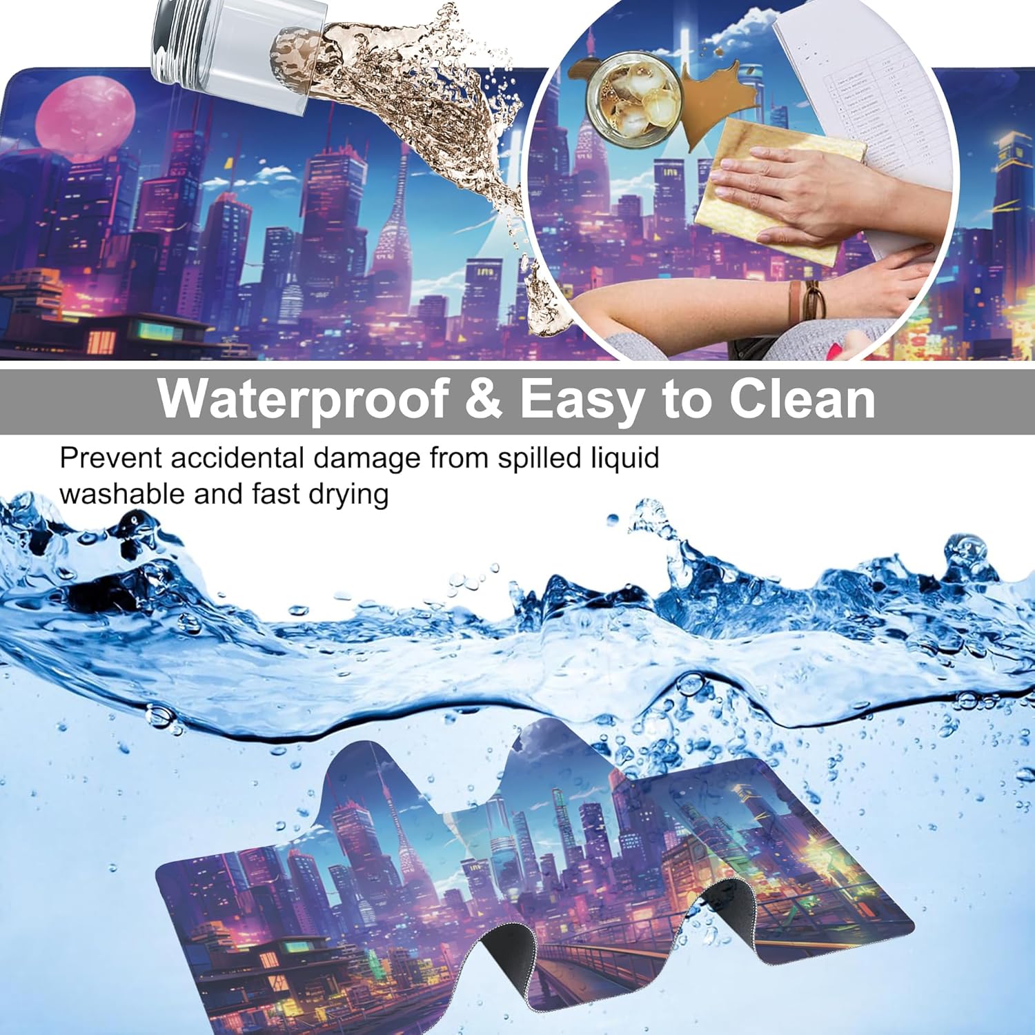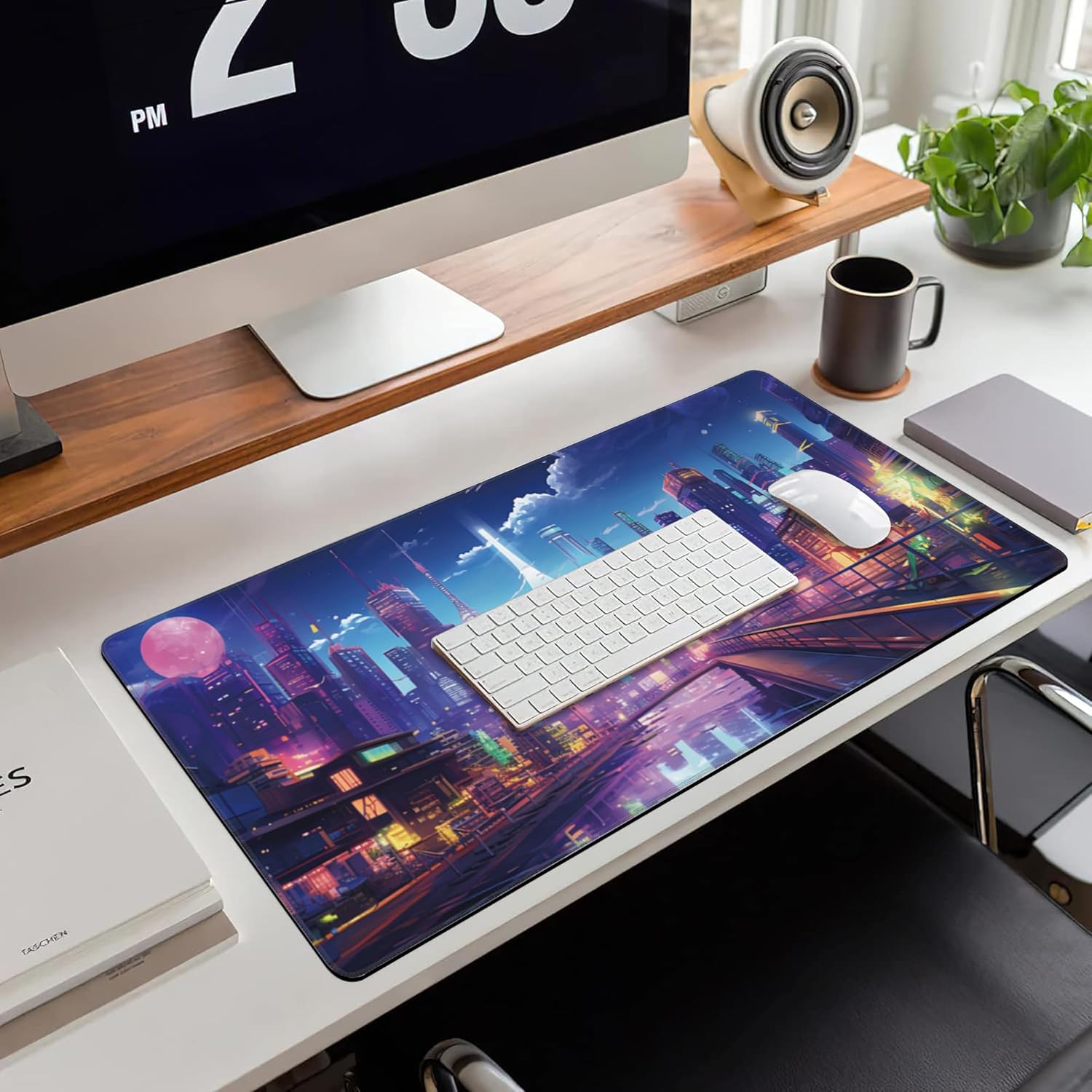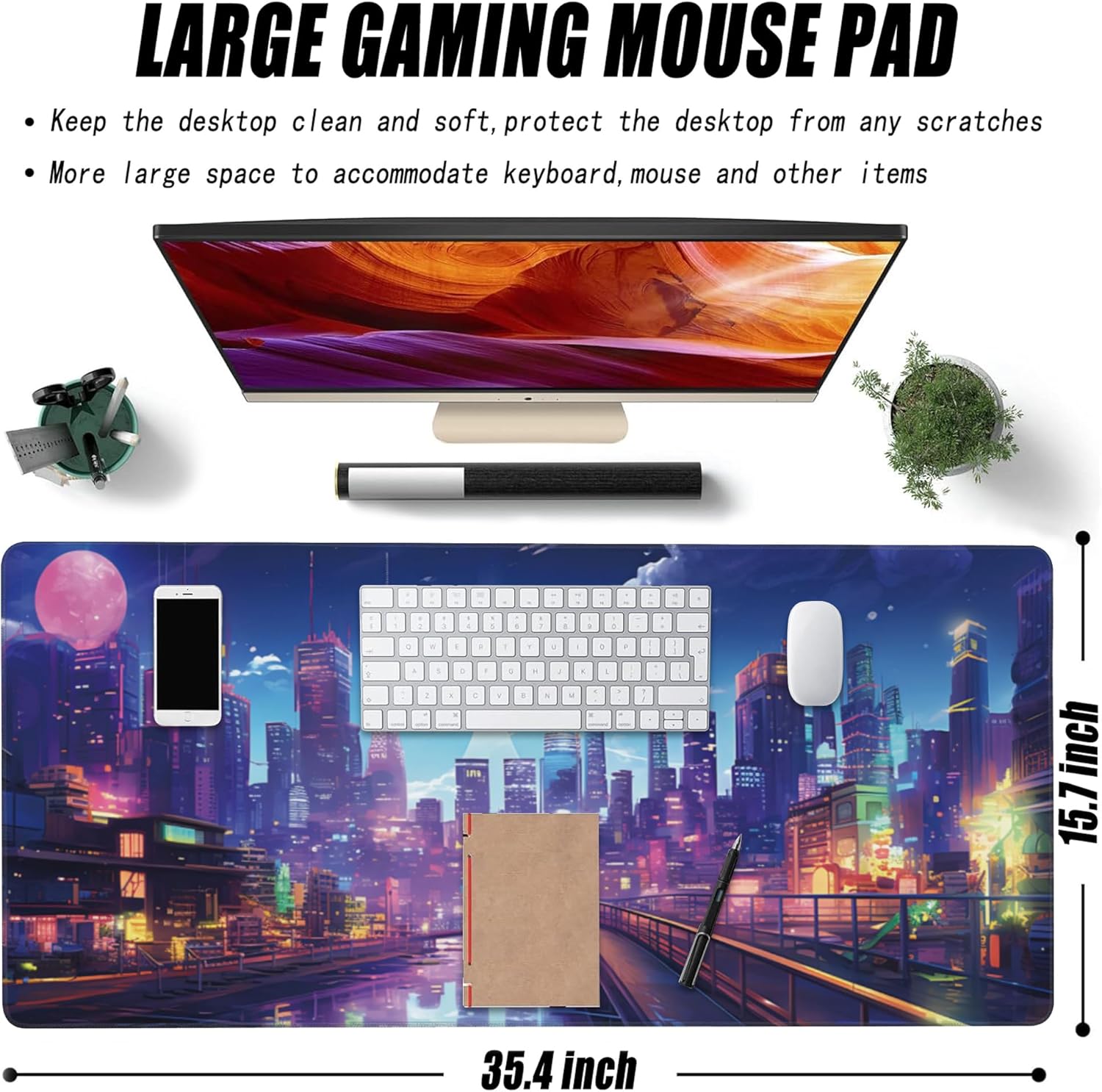 Extended Large Gaming Mouse Pad, Cyberpunk Streets Large Desk Mat for Desktop XXL, Non-Slip Rubber Base Stitched Edges Long Computer Keyboard Desk Pad Mouse Mat for Gaming Home Office 35.4"X15.7"