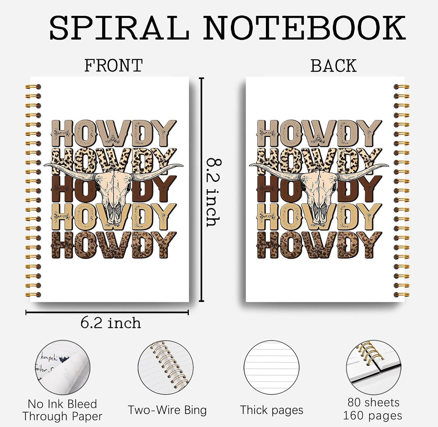 Howdy Western Notebook Journal 164 Pages - Western Gifts for Women Cowboy Cowgirl, Western Cool Notebook, College School Supplies, 5.5×8.3 Notebook Spiral Bound
