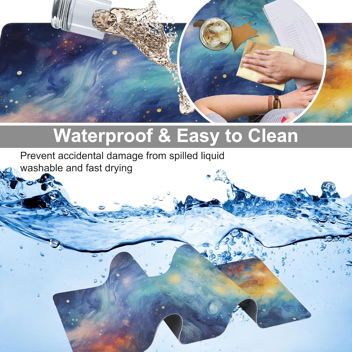 Extended Large Gaming Mouse Pad, Stars Nebulas and Cosmic Swirls Large Desk Mat for Desktop, Non-Slip Rubber Base Stitched Edges Long Computer Keyboard Desk Pad Mouse Mat for Home Office 35.4"X15.7"