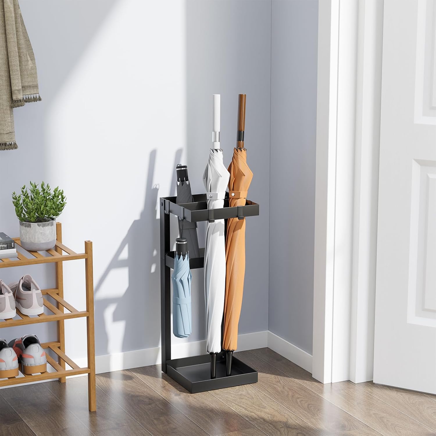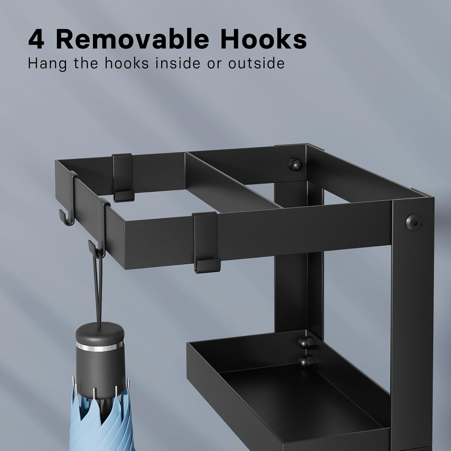 - Compact Umbrella Stand with Convenient Hooks: The small umbrella shelf can accommodate compact folding travel umbrellas. Four detachable hooks are provided for hanging folding travel umbrellas