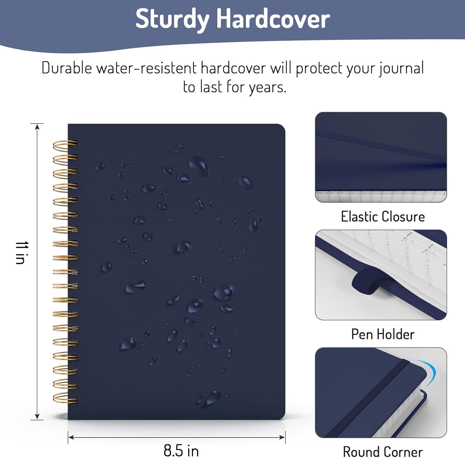 - Strong Metal Twin-wire: Feature a super durable Golden double wire spiral binding with heavy-duty hardcover; making it easy to fold over and laying the notebook totally flat easily, giving you a better writing experience. The Professional durable hardcover will protect your journal to last for years. Product Dimensions: 11 in (L), 8.5 in (W), 1.0 in (H).