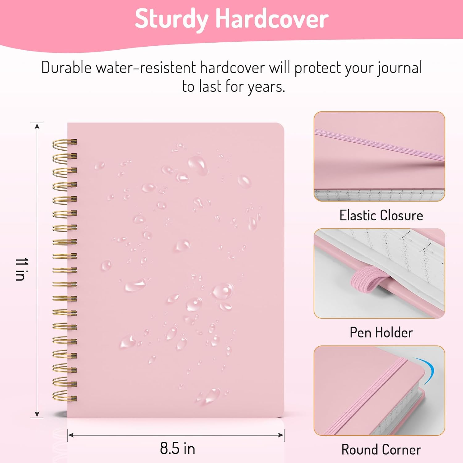 - Strong Metal Twin-wire: Feature a super durable Golden double wire spiral binding with heavy-duty hardcover; making it easy to fold over and laying the notebook totally flat easily, giving you a better writing experience. The Professional durable hardcover will protect your journal to last for years. Product Dimensions: 11 in (L), 8.5 in (W), 1.0 in (H).