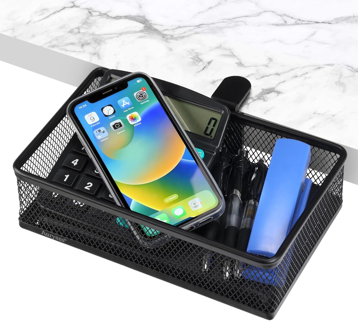 - Functionality: The tight mesh grid prevents items from falling and allows for easy visualization of your belongings, protecting your hands from sharp objects. You can also store other office supplies like pens, staplers, scissors, rulers, compasses, remote controls, and more.