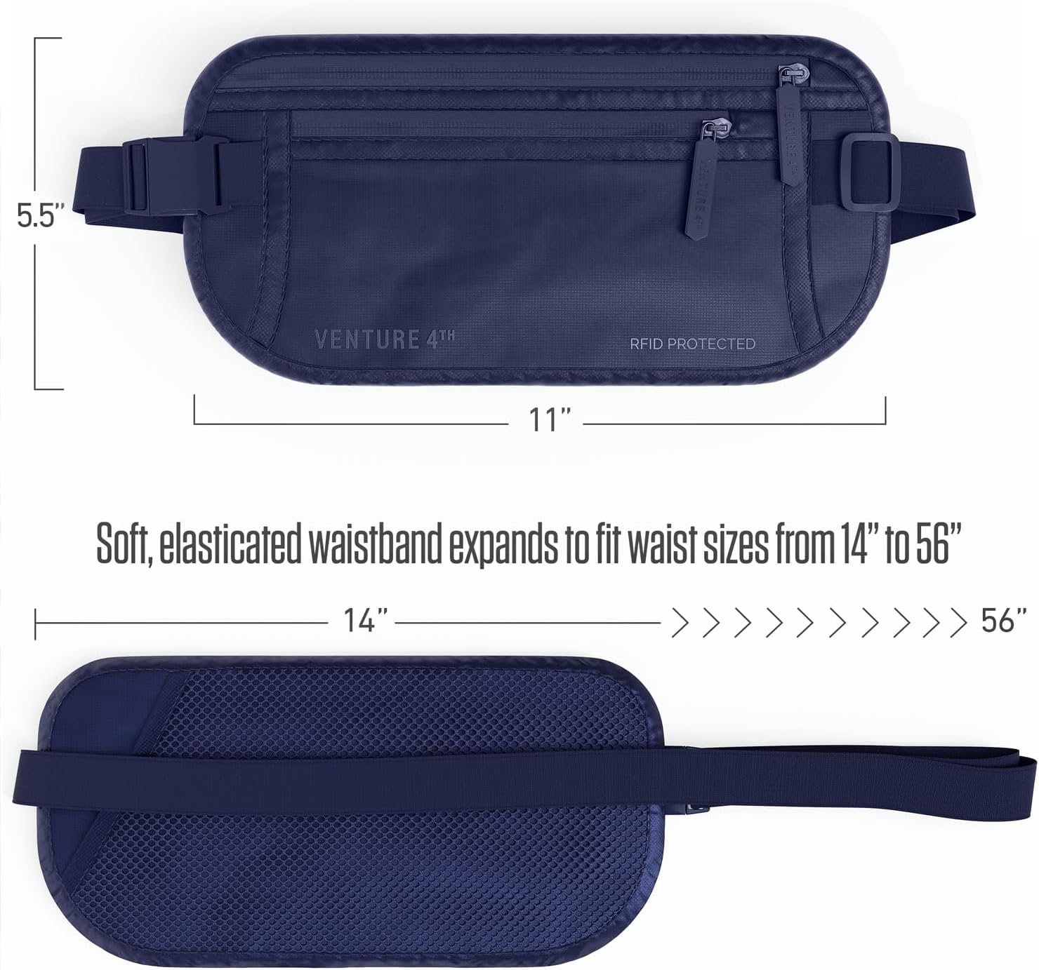 Travel Money Belt, RFID Blocking for Men & Women - Ideal for Keeping Your Cash, Credit Card, Passport, Phone Safe When Traveling (Sleek Navy Blue)