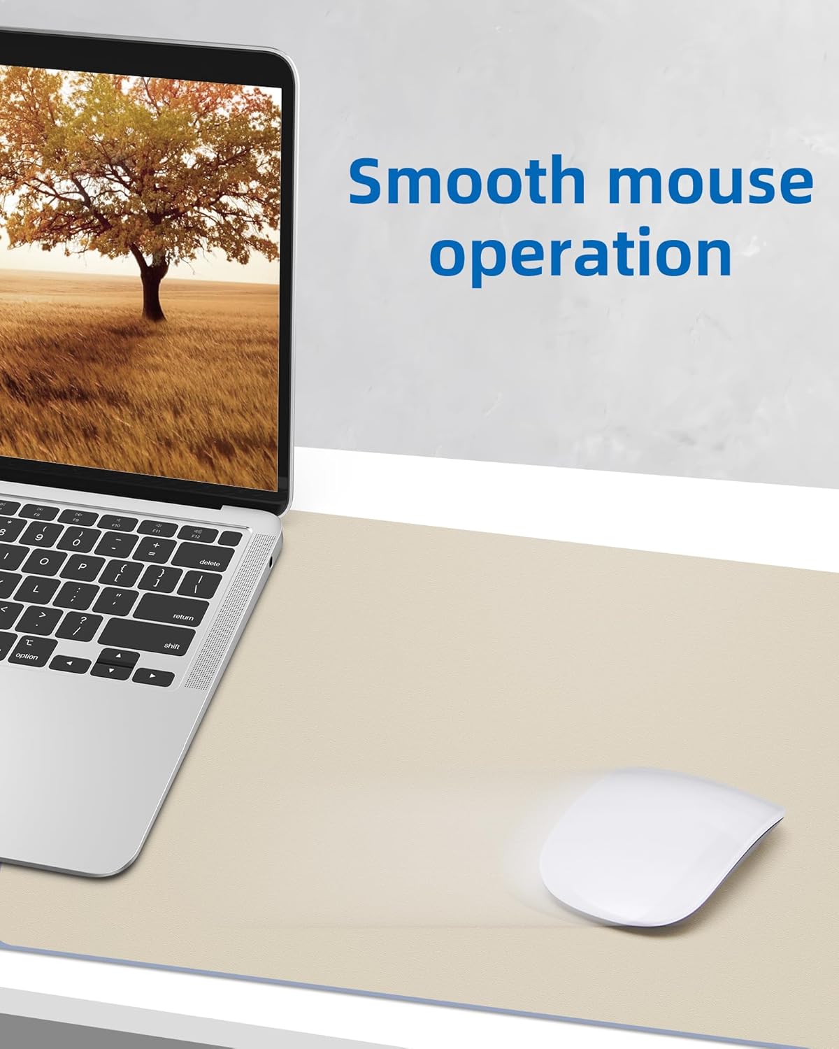 AFIING Leather Desk Pad Protector, Mouse Pad, Office Desk Mat, Non-Slip PU Leather Desk Blotter, Large Desk Mat, Waterproof Keyboard Mat for Office/Home/Decor (Beige, 55" x 17")