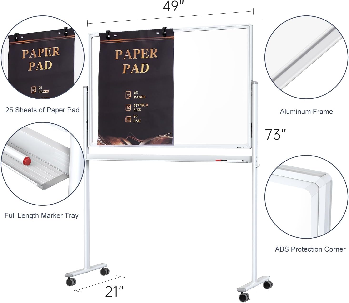 - COMES WITH PAPER PAD - Tankee large whiteboard comes with a flipchart paper pad of 25 sheets. It can be hung on plastic hooks. Provides effective performance when teaching, presentation, and organization are needed. Elsewhere, you have to pay about $20 for an easel paper pad. But here it is free.