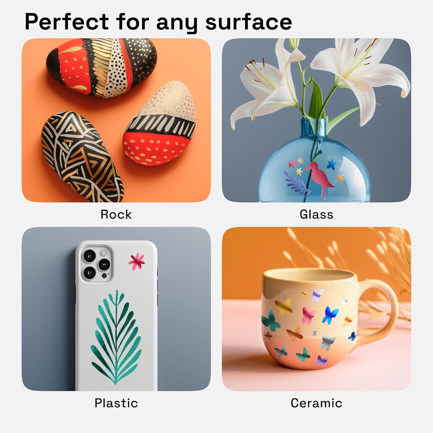 - Great for All Surfaces: Use these metallic paint pens as metallic fabric markers, metallic chalk pens, or metallic pens for glass. Metallic markers paint is good on almost all surfaces, like paper, rocks, stone, plastic, metal, wood, and more.