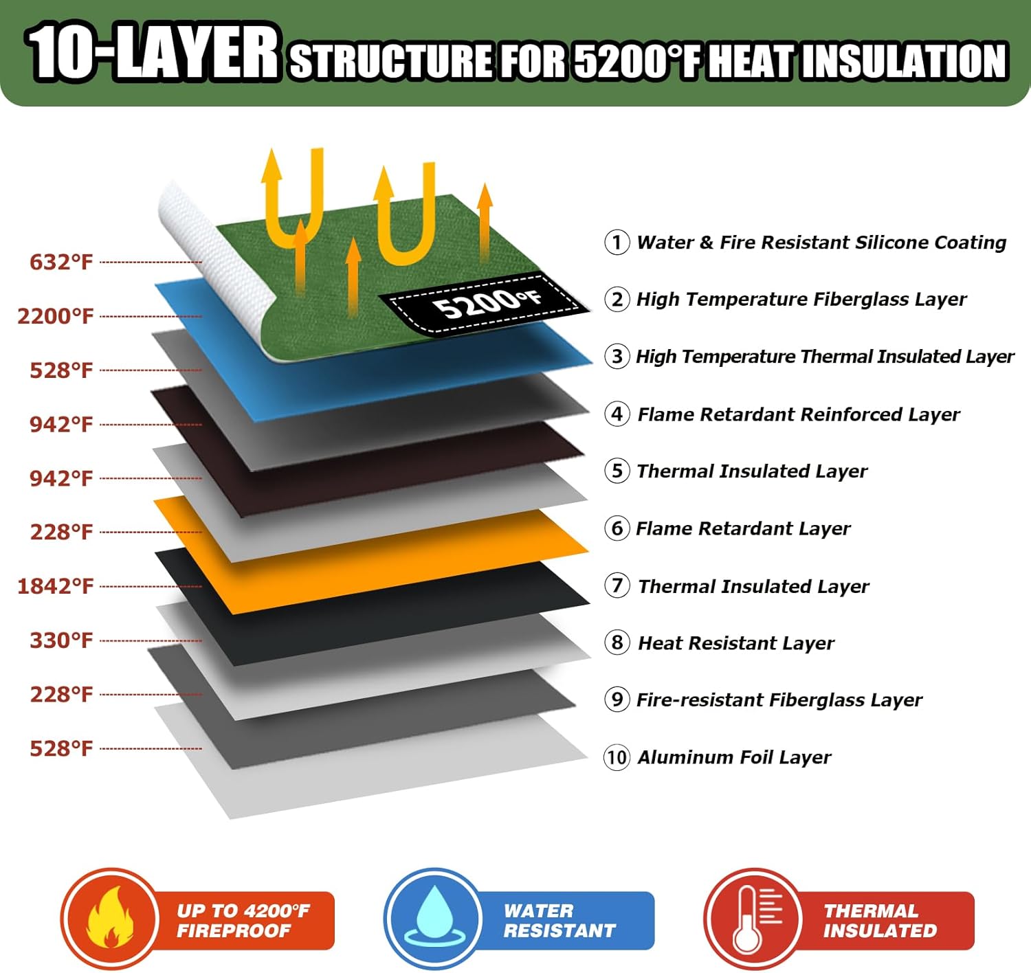 - [UPGRADED FIREPROOF DOCUMENT BAG – 5200°F HEAT INSULATED]: Our Upgraded Fireproof Bag is equipped with 10-LAYER Fire Resistant & Heat Insulation Structure. This fireproof document bag offers exceptional heat resistance, withstanding temperatures up to 5200°F for a certain period. Enhanced with silicone coating and secure hook & loop closure, it provides additional water resistance. Recommended by firefighters, this document safe fireproof bag ensures the safety of your valuables.
