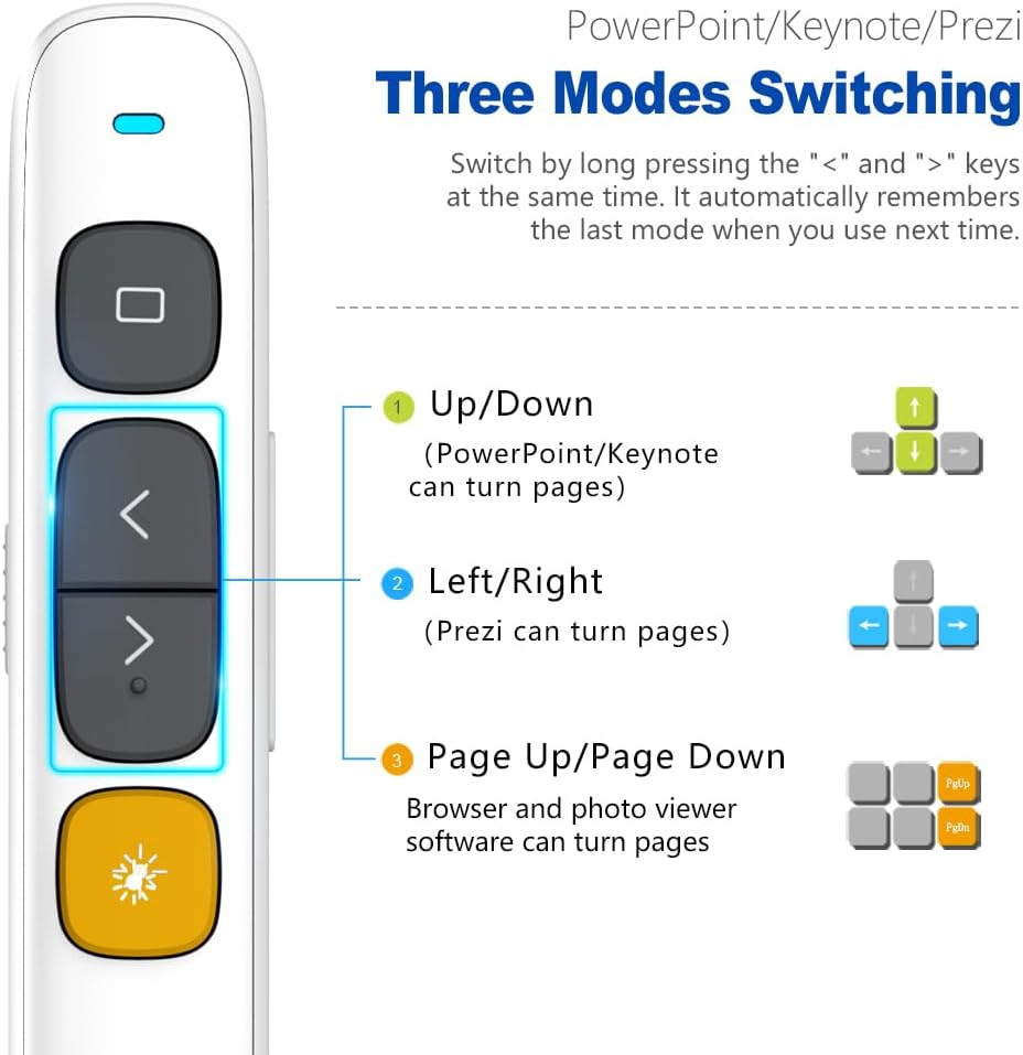 - Reprogrammable buttons: You can reconfigure the button functions to suit your individual needs using the Norwii Presenter software. Download the free software from Norwii Official
