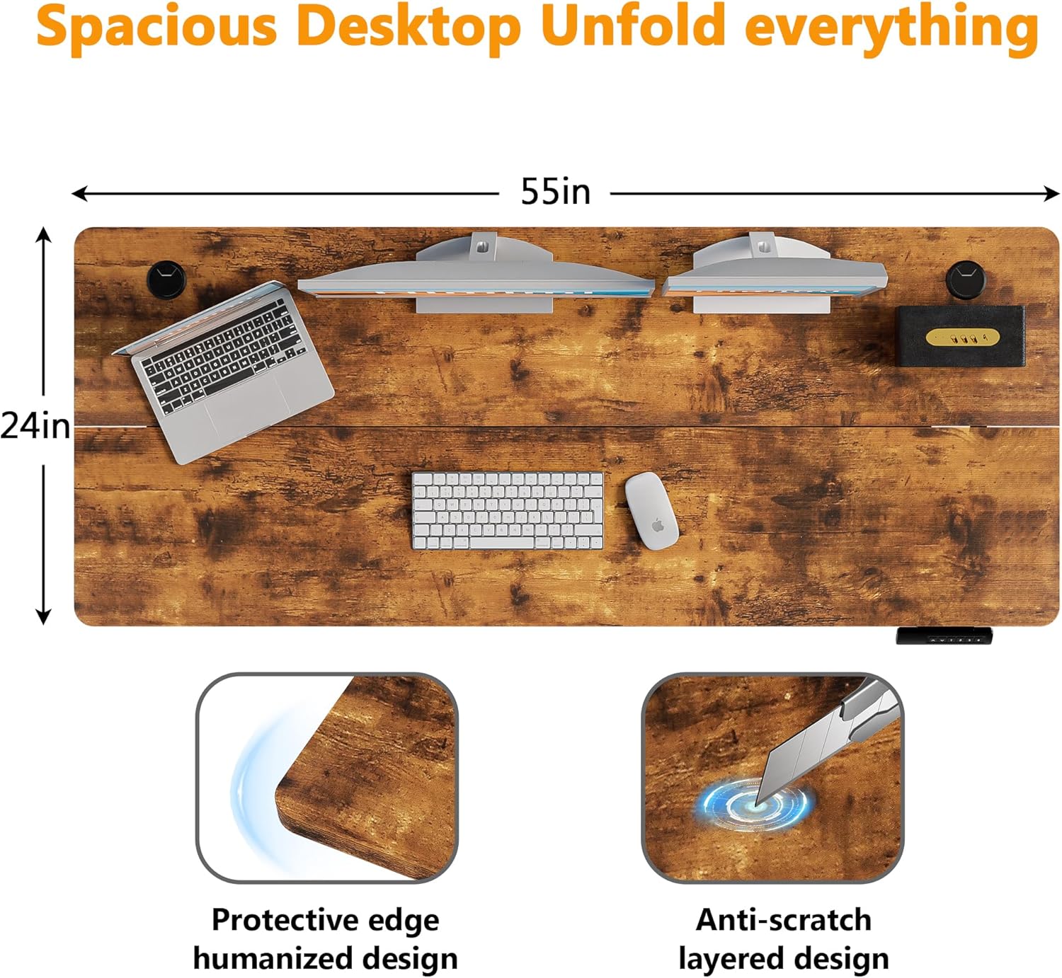 Himimi Electric Standing Desk 55 x 24 inch for Home Office,Sit-Stand Adjustable Desk with Memory Presets,Height Adjustable Desk for Gaming/Working,Free Hook, Lockable Wheels,Mouse Pad,Brown