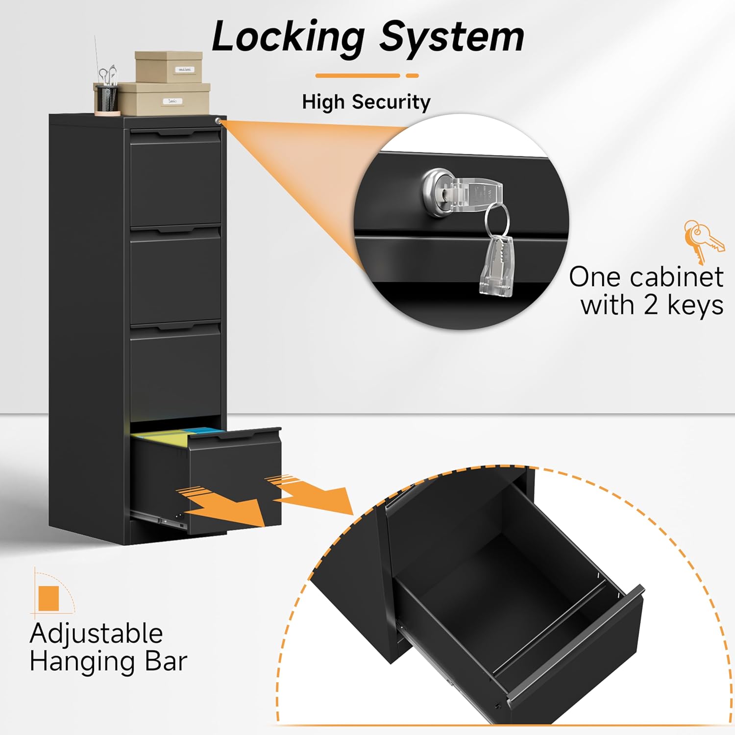 4 Drawer File Cabinet, 17.8" D Metal Filing Cabinets with Lock, Vertical Filing Cabinet for Home Office, Steel File for Letter/Legal/A4/F4 Size, Easy Assemble (Black)
