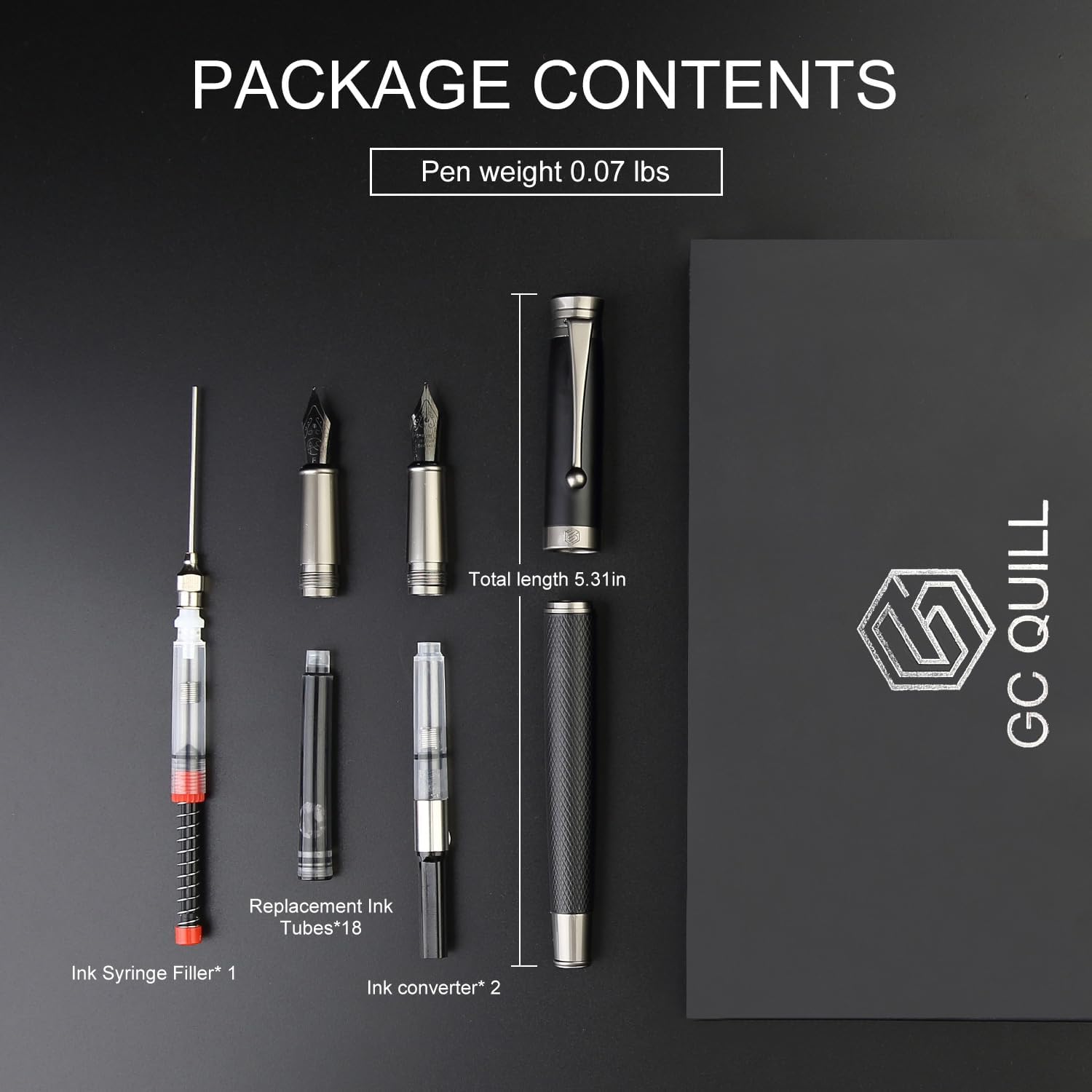GC QUILL Fountain Pen Set - Fine & Medium Nibs, Includes 18 Ink Cartridges, Ink Refill Converter & Syringe Filler, Gift for Writing, Journaling & Calligraphy MU-13