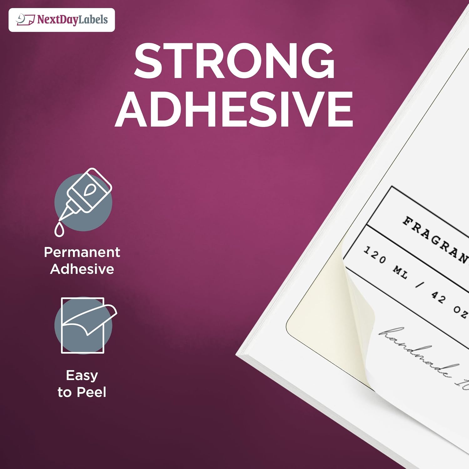 - STRONG PERMANENT ADHESIVE - Bright matte white labels stickers with a strong permanent adhesive so they attach firmly to boxes, pallets, cardboard, envelopes, paper, glass, plastic, metal, tin, and more. Will work with all Laser, Inkjet, Copy Machines, and Offset Printers.