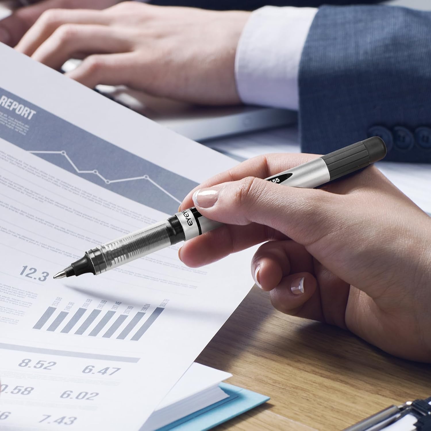 EYEYE Black Rollerball Pens 12 Pack, 0.7mm Medium Point Roller Ball Pen Quick Dry, Liquid Ink Pens Fine Point Smooth Writing Pen for Journaling, Note Taking, Office, School Supplies