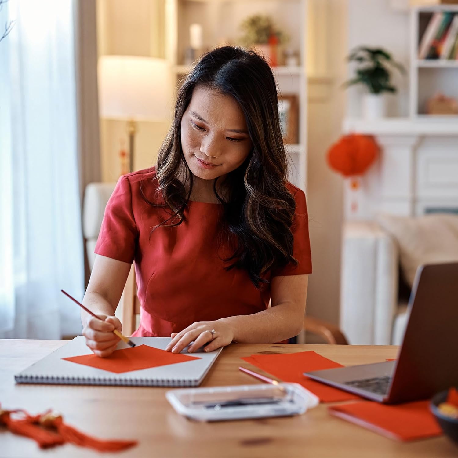 PATIKIL Red Xuan Paper, 40 Sheets, 8.7" x 8.7" Chinese Calligraphy Practice Paper
