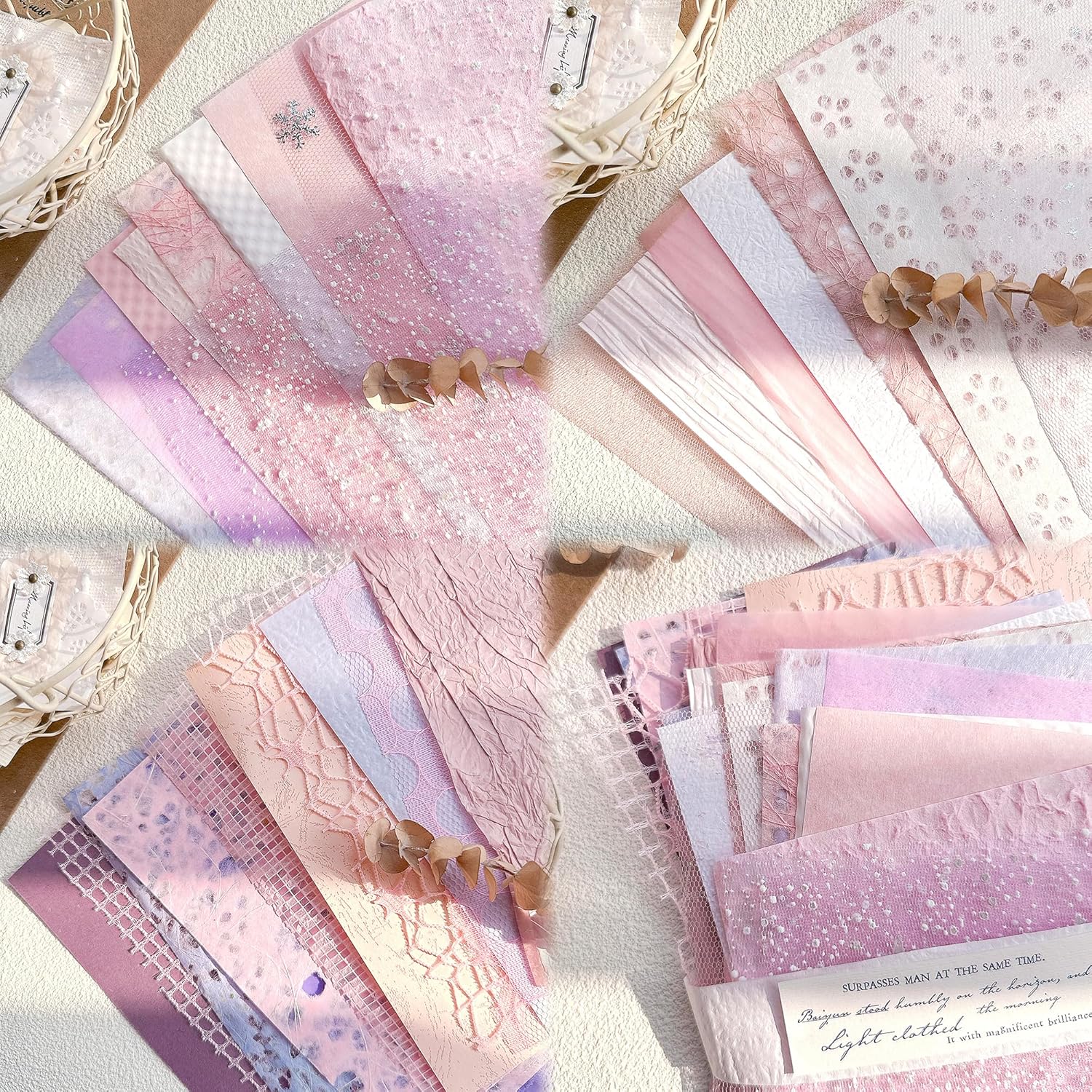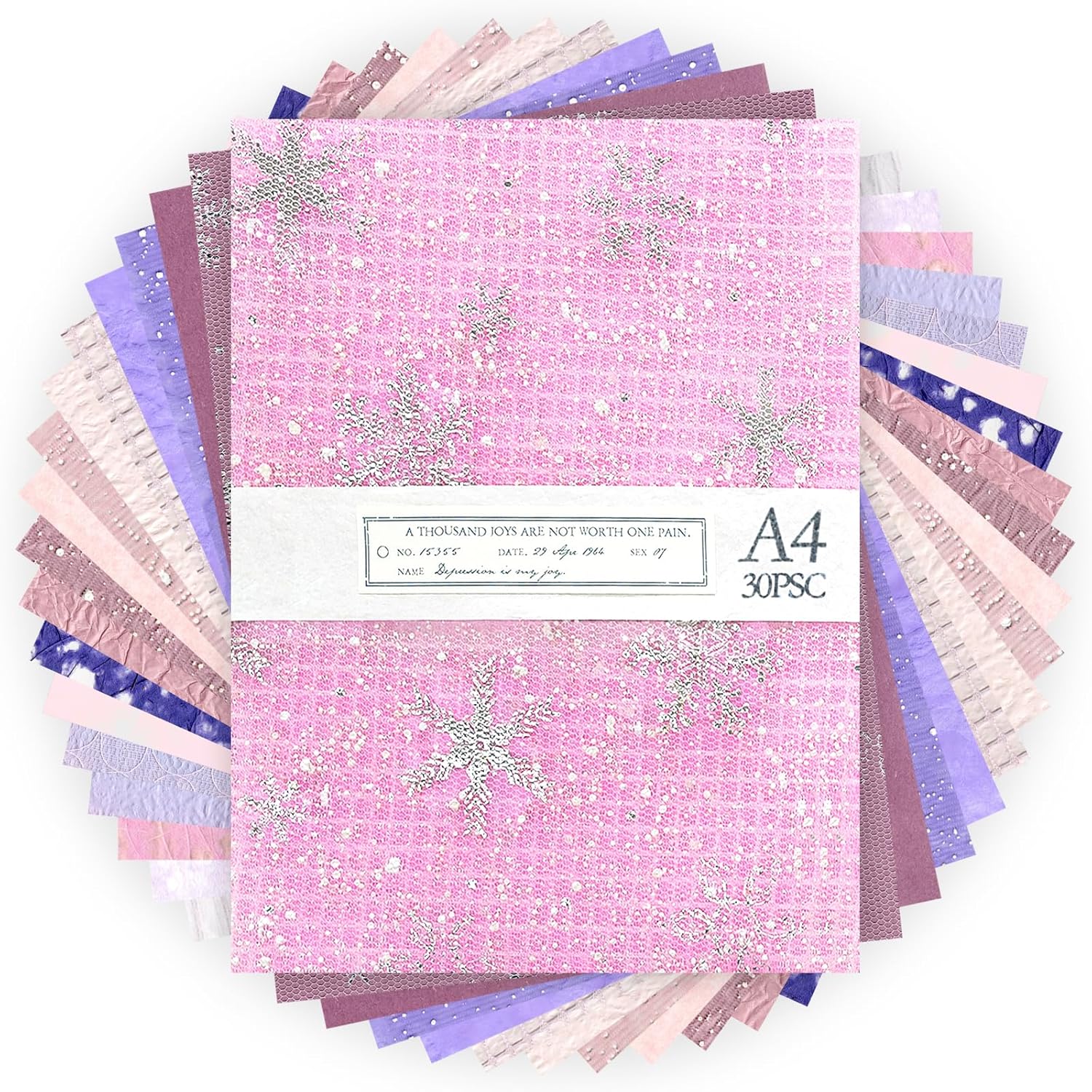 Aromoty 30 sheets A4 size Textured Scrapbook Paper&Mesh Fabric set - Large Handmade Craft Mulberry Special Paper Mix for Scrapbooking Junk Journal Supplies Card Materials Collage, 11.7x8.3 Inches