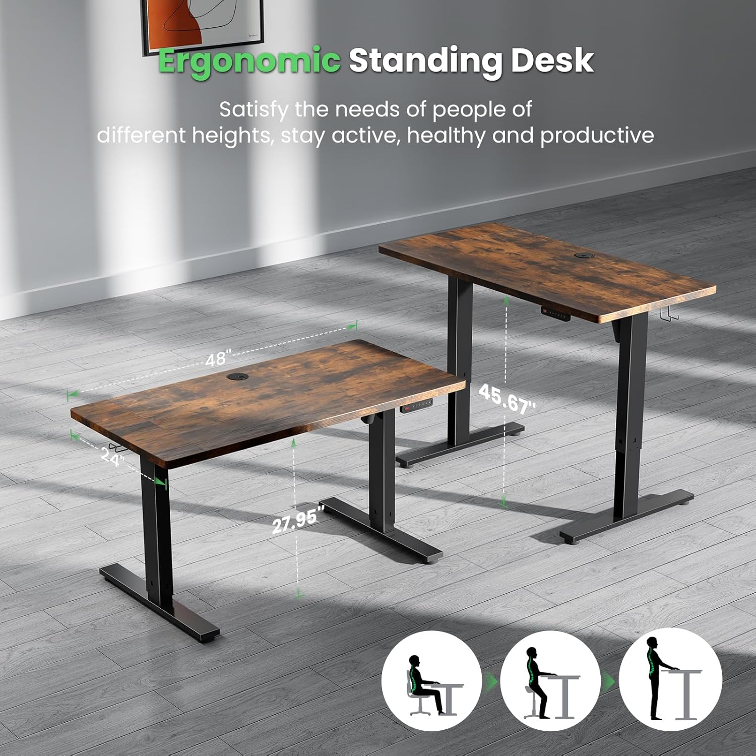 - Adjustable Height Desk : Effortlessly transition from sitting to standing with just the touch of a button (27.95" to 45.67") to add comfort throughout the day. SIAGO stand up desk is a great tool on your path toward stay active, healthy and productive.