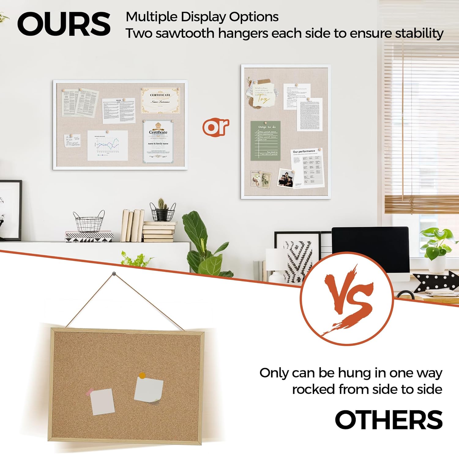 - Unique Design: Easily customize the board orientation to fit your space. Natural cork bulletin board add a classic look to your office or home. Both strong and stylish, it will be a great addition to your space.