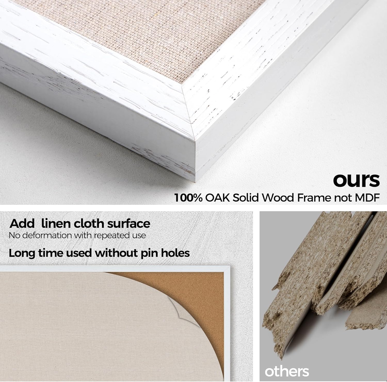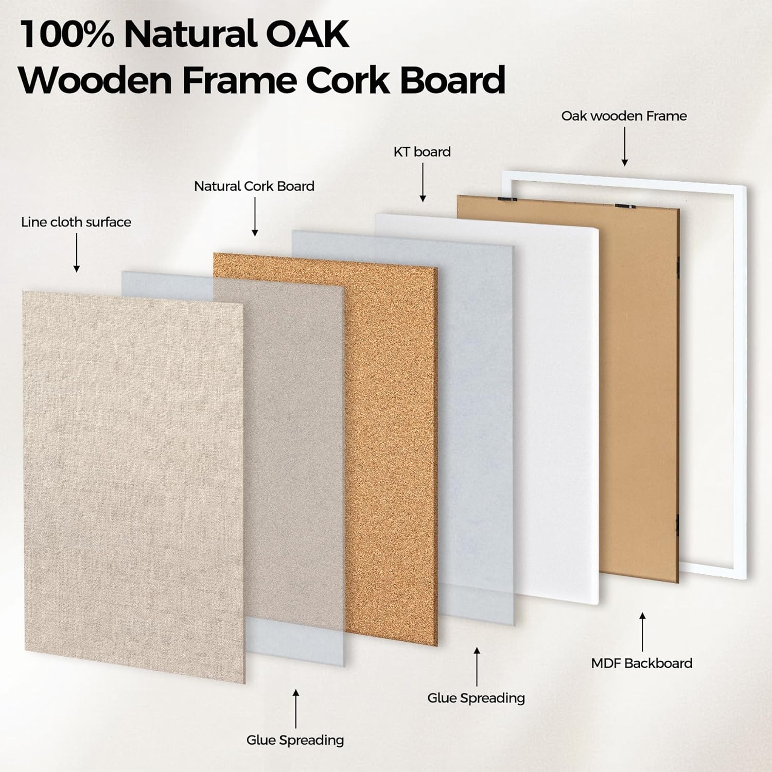 - Oak Frame Material: Our cork boards for walls is made of 100% oak wood which has well self-healing ability and repairability. The pin board features a four-ply splint design that is strong and thick enough not to be punctured by thumbtacks.