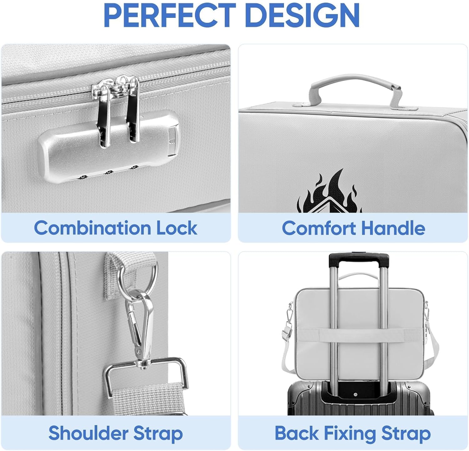 - Unique Design: The large and medium-sized fireproof boxes feature sliding rails for easy document adjustment, PVC anti-slip pads for stability, and reflective strips for visibility in low light; The smaller fireproof bag includes a reinforced handle and adjustable shoulder strap for easy carrying