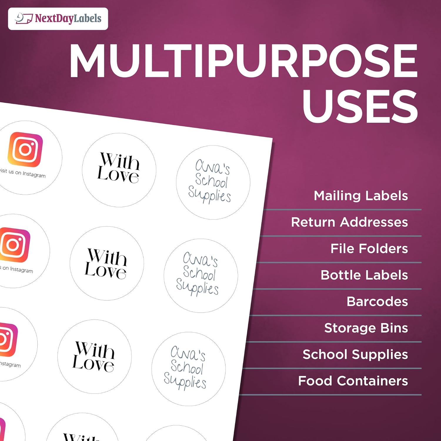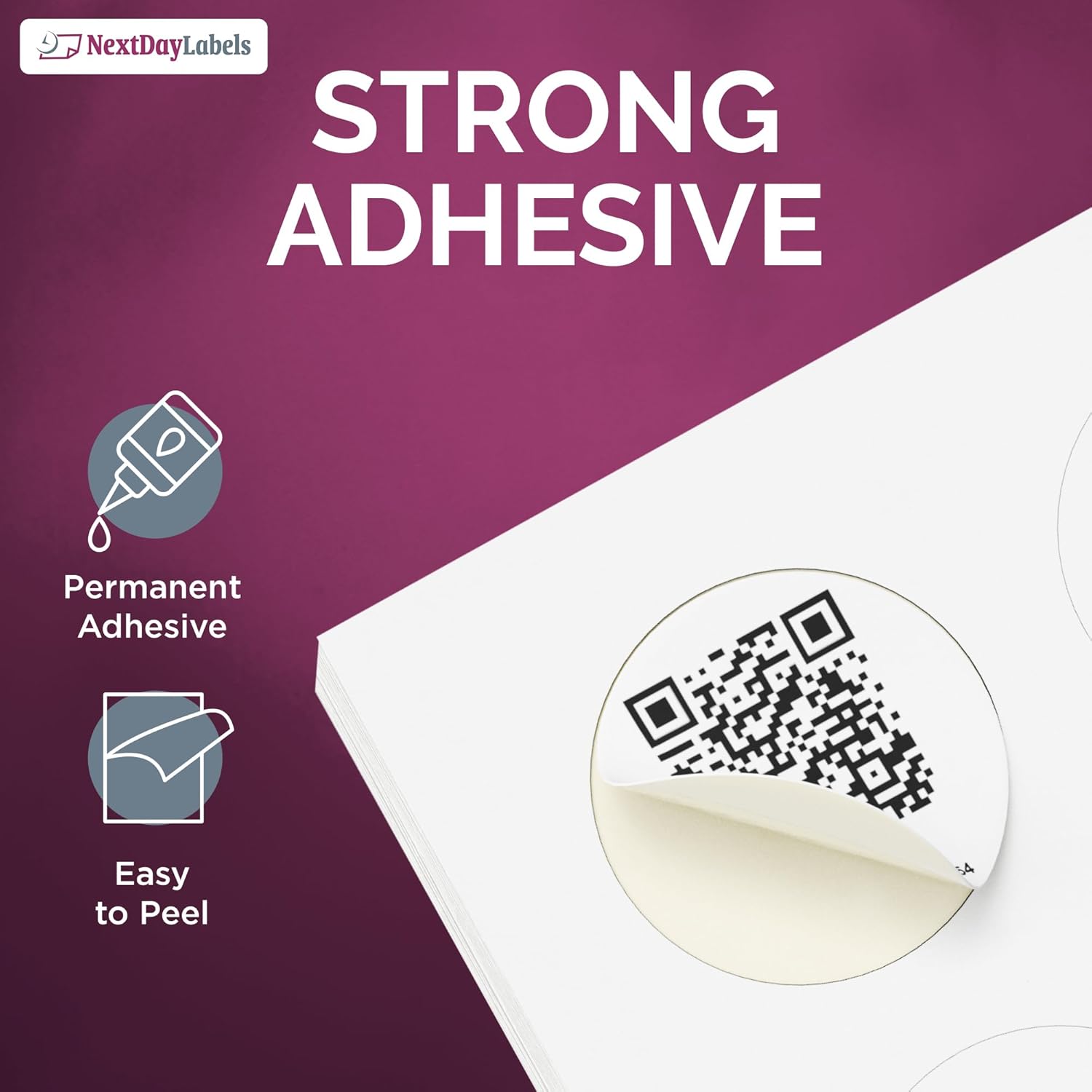NextDayLabels - 2 Inch Round Labels for Bleeds - Sticker Labels for Printer - Matte White Blank Laser/Inkjet Printer Labels - Circle Stickers Printable Labels (100 Sheets, 12 Per Sheet, 1200 Labels)