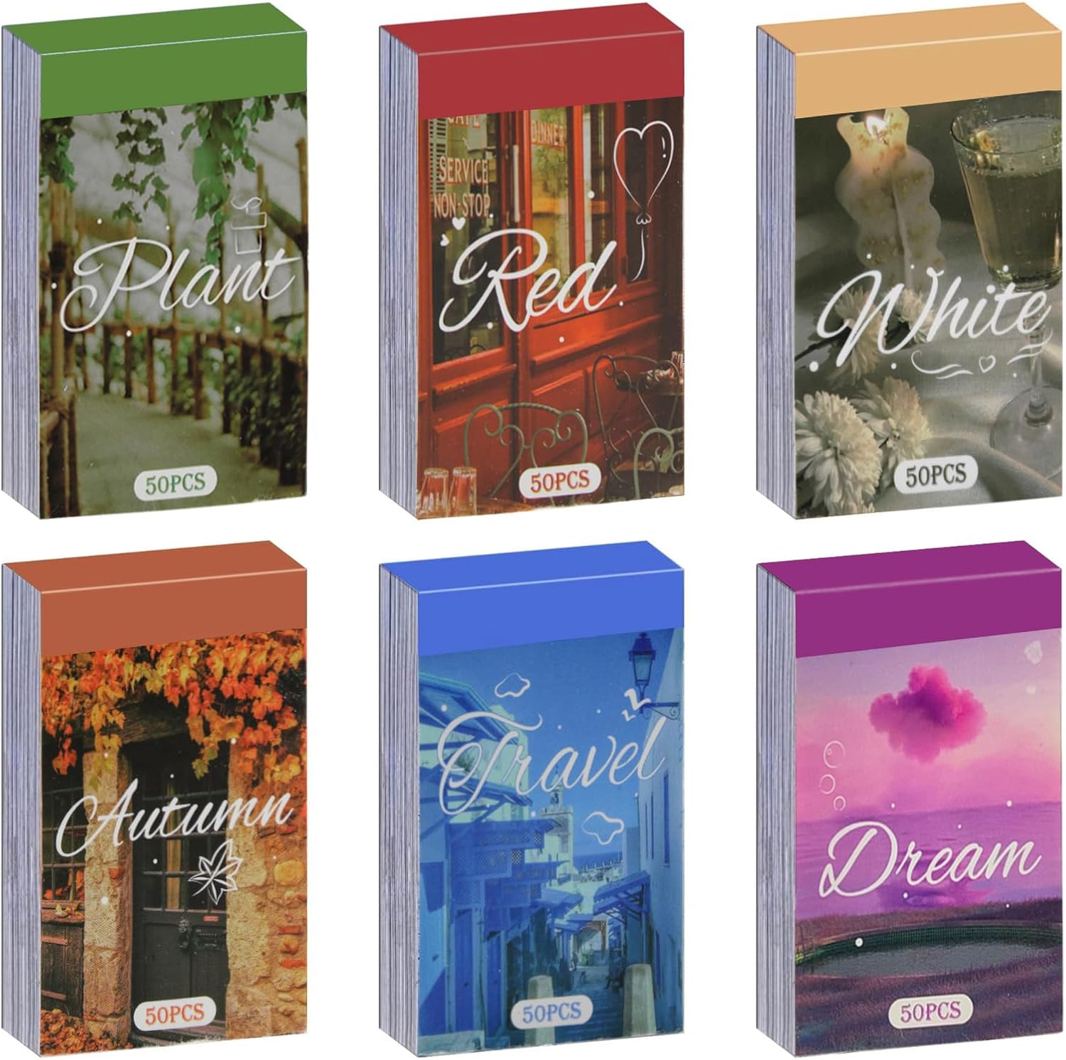 Washi Stickers, 6 Sets 300 Pcs Aesthetic Sticker Book for DIY Journaling, Journaling Supplies for Bullet Journal Art Diary Card Craft Gifts Planner Notebook.