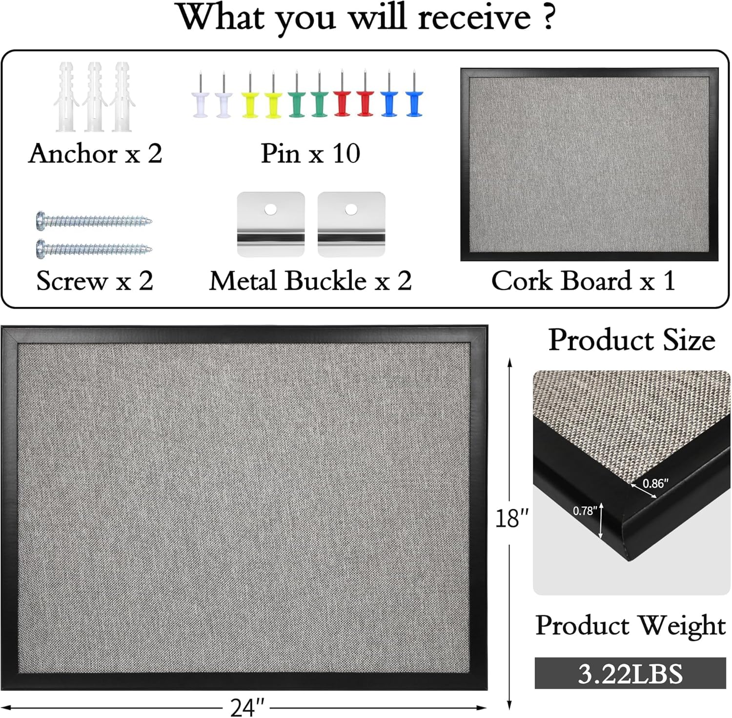 - Premium Cork & Canvas -- Made of top-notch quality cork inside, the bulletin board is self-healing and durable, keeping a good condition in long term use. With an added excellent layer of grey canvas fabric, the linen board can prevent pin holes and puncture well, more fashionable and suitable for decorating.