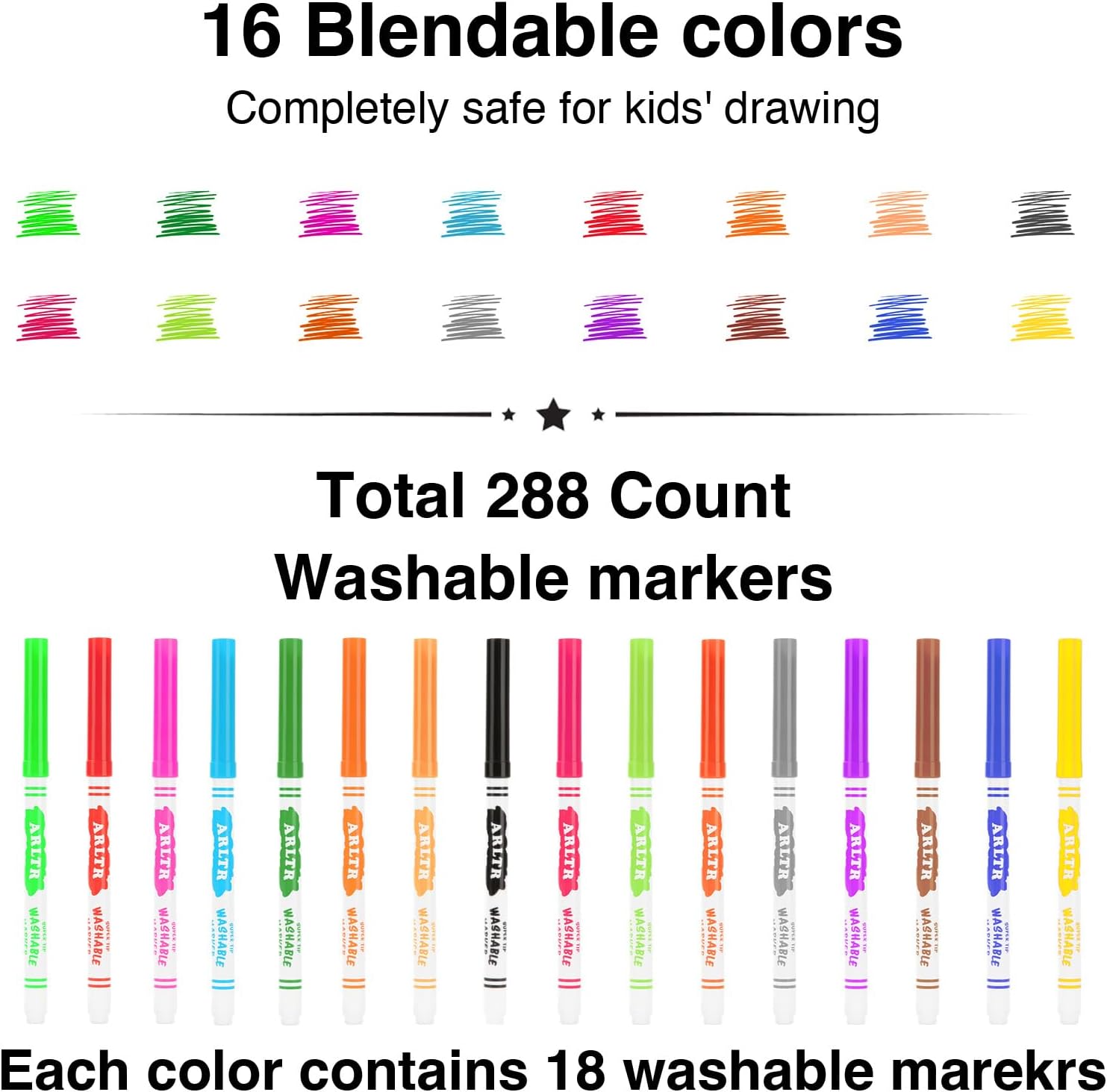 - Safety Guarantee:These washable markers bulk are completely safe. which are low-odor and vivid. They conform to ASTM and EN71 regulations. They are 100% non-toxic and safe to use for school office and home.
