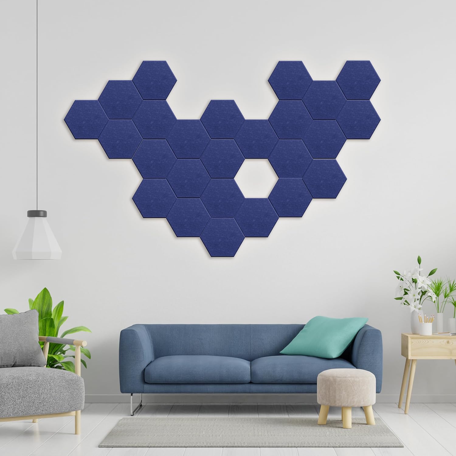 Hexagonal Acoustic Panels-12 Pack High-Density Sound Absorbing Panels 12"X10"X0.4" for Enhanced Noise Reduction, DIY Design, Idea for Studios, Offices, and Home Theaters(Sapphire Blue)