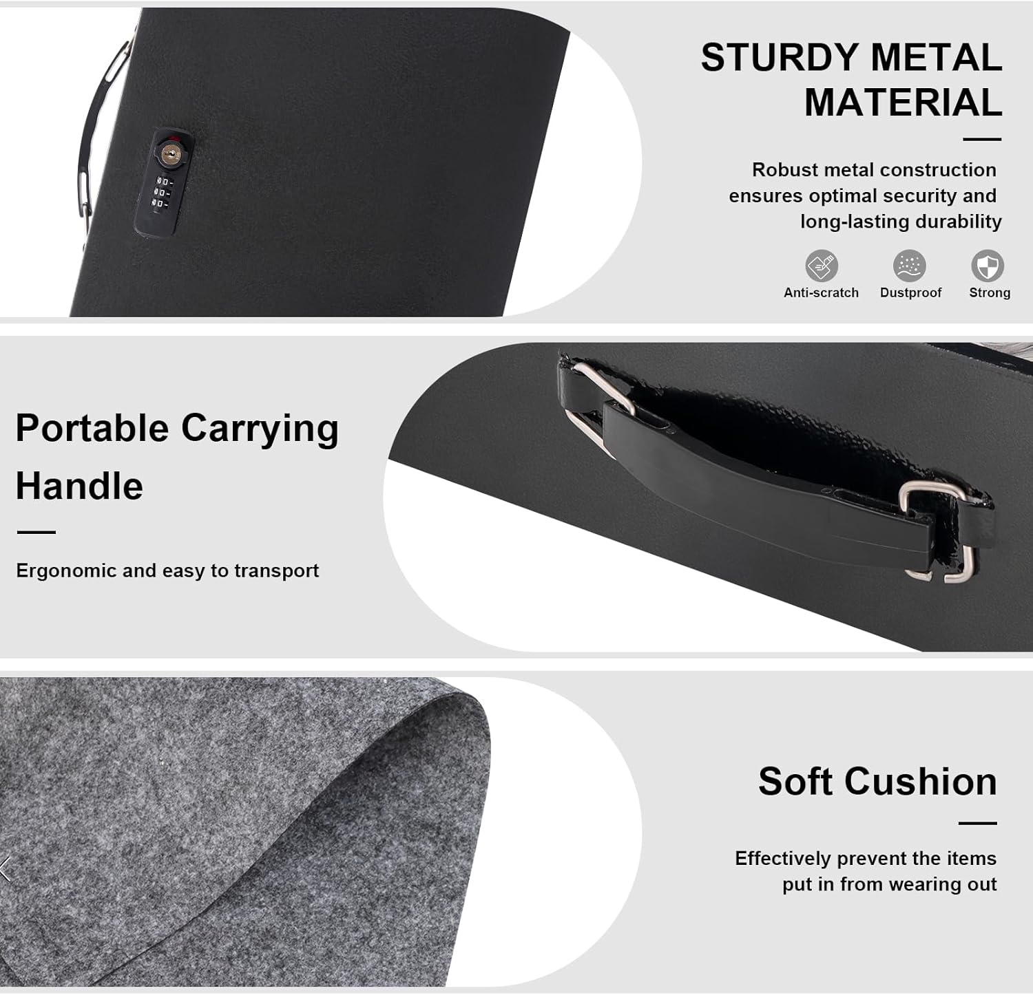 Fireproof Document Box with Key Lock & Fireproof Money Bag,Fire Safe Box for Valuables,Fire Resistance Security Chest,Fireproof Box for Documents,Passport Extra Large (Black-Combination, Large)