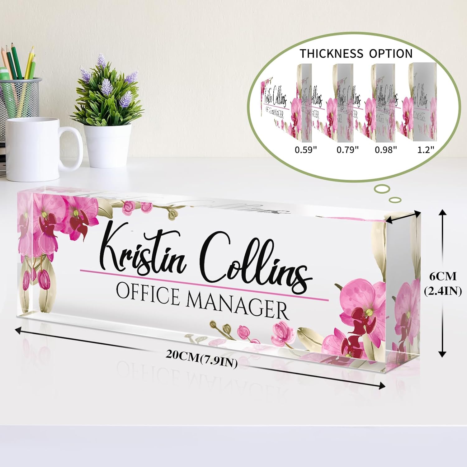Custom Name Plate for Desk, Acrylic Office Decor For Women Men, Personalized Office Desk Accessories, Teacher Employee Appreciation Gifts For Social Worker Boss Coworkers (Flowers-2)