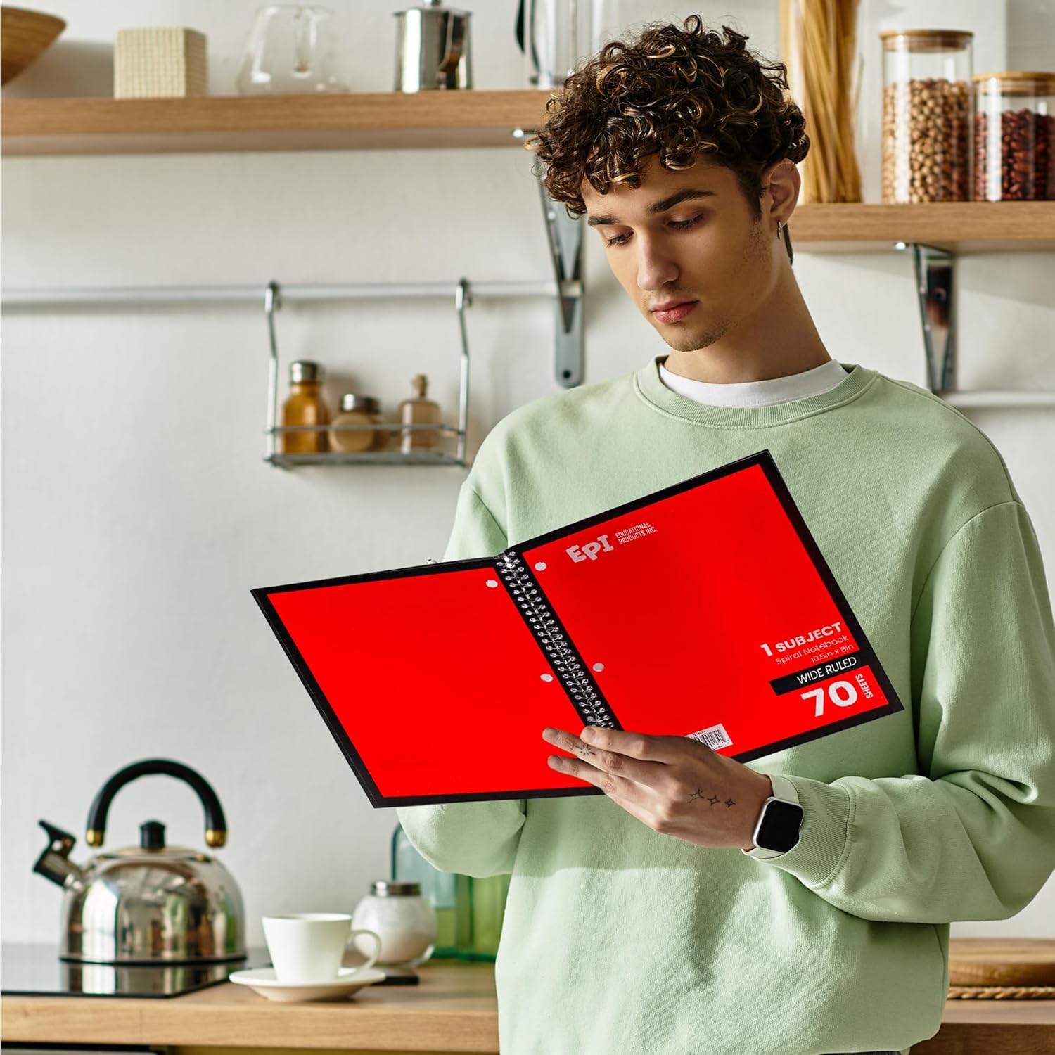 EPI Spiral Notebook | Wide - 70 Sheets, Durable Spiral Binding | 10.5 x 8 in | Classroom Supplies | School, Office, Note Taking, Journaling - 12 Pack